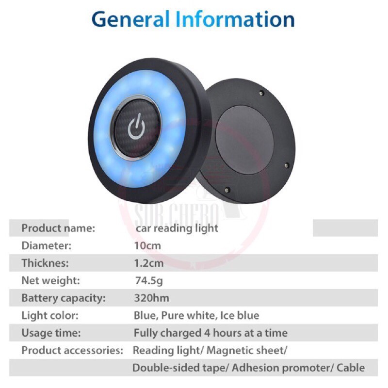 SC360 Rechargeable Lampu Kabin 3 Warna dalam Kereta Almari Storage LED Vehicle Car Interior Light Dome Roof Ceiling