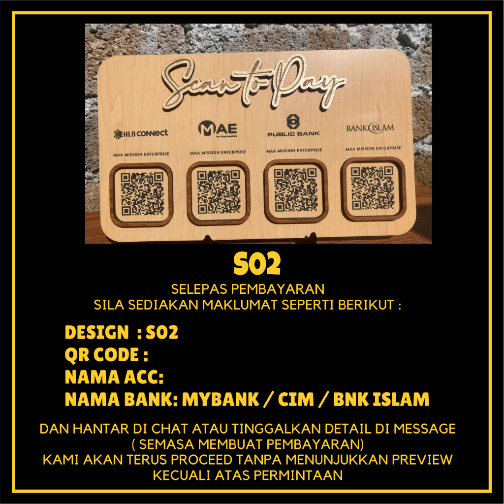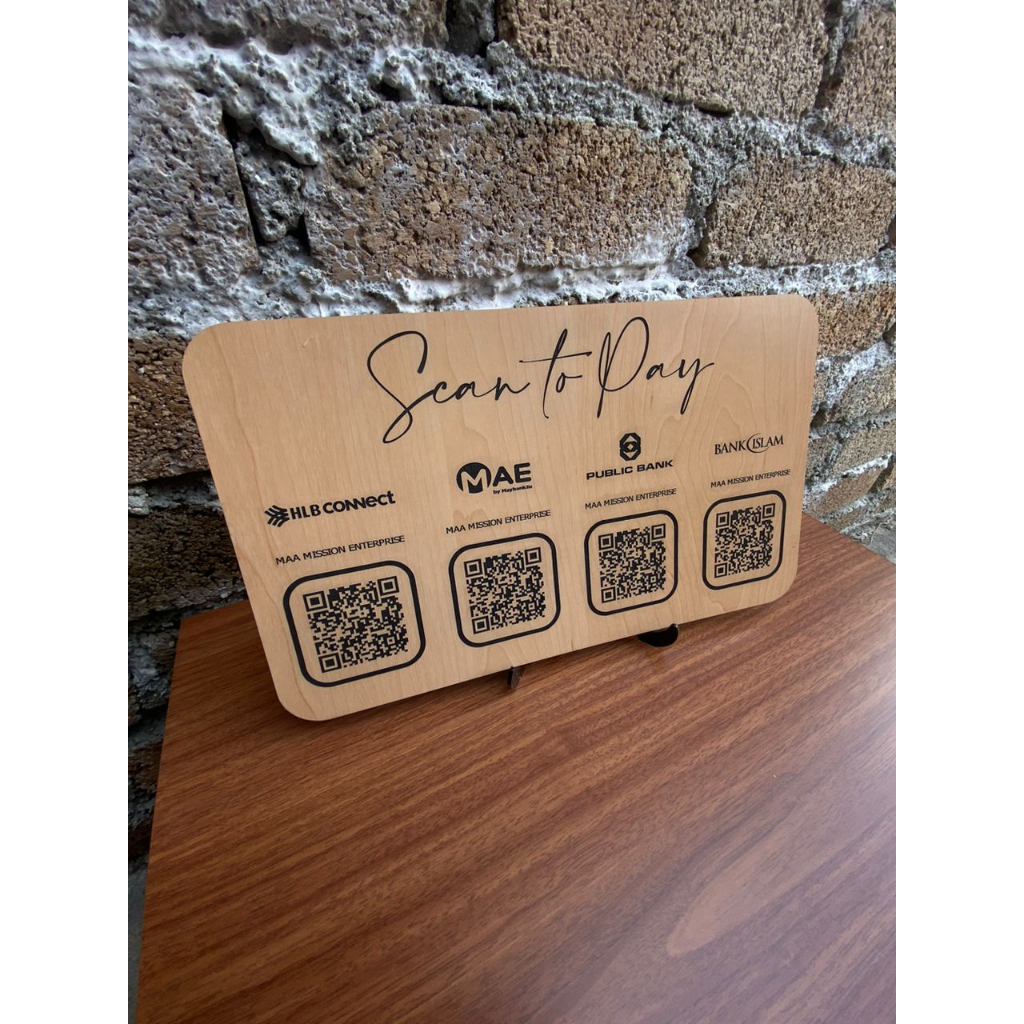 SCAN TO PAY QR CODE MAE / MAYBANK QRPAY/ TNG/ GRAB PAY WOOD LAMINATE ENGRAVING