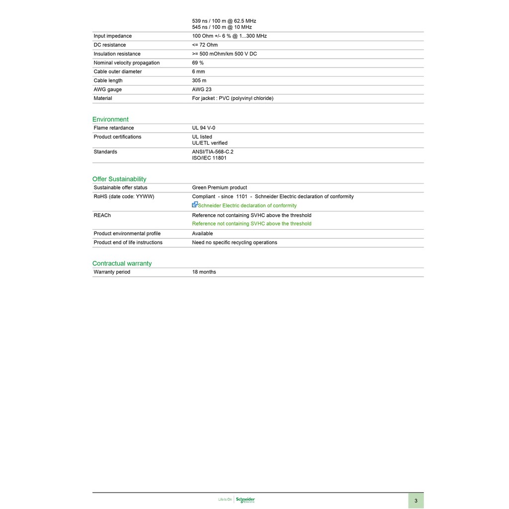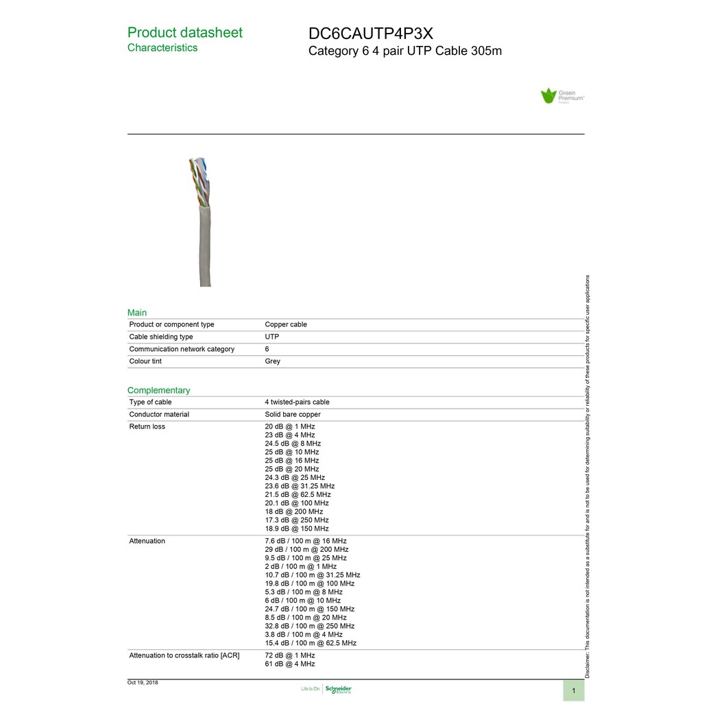 SCHNEIDER CB-CAT6 DIGILINK 6 4 pair UTP Cable 305m