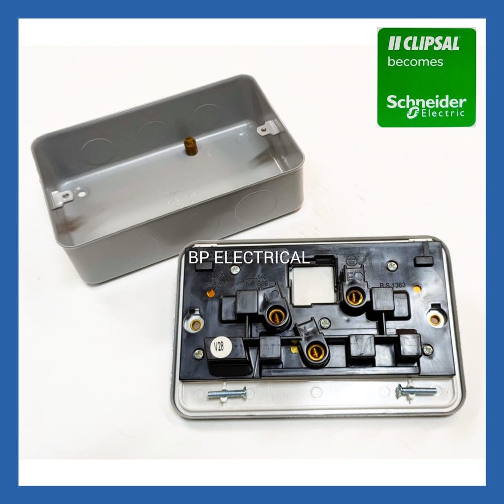SCHNEIDER / CLIPSAL 13A 2Gang / Double Metal Clad Switch Socket - ESM25