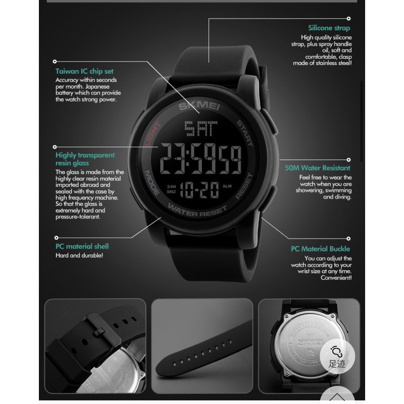 SCMI Men's Sports Waterproof LED Display Digital Watch Jam Tangan Lelaki Quartz