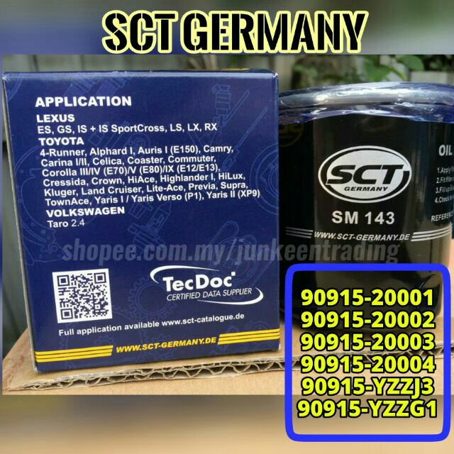SCT-Germany Premium Oil Filter for TOYOTA INNOVA HILUX REVO VIGO VNT HIACE (Spec 90915-YZZD2)