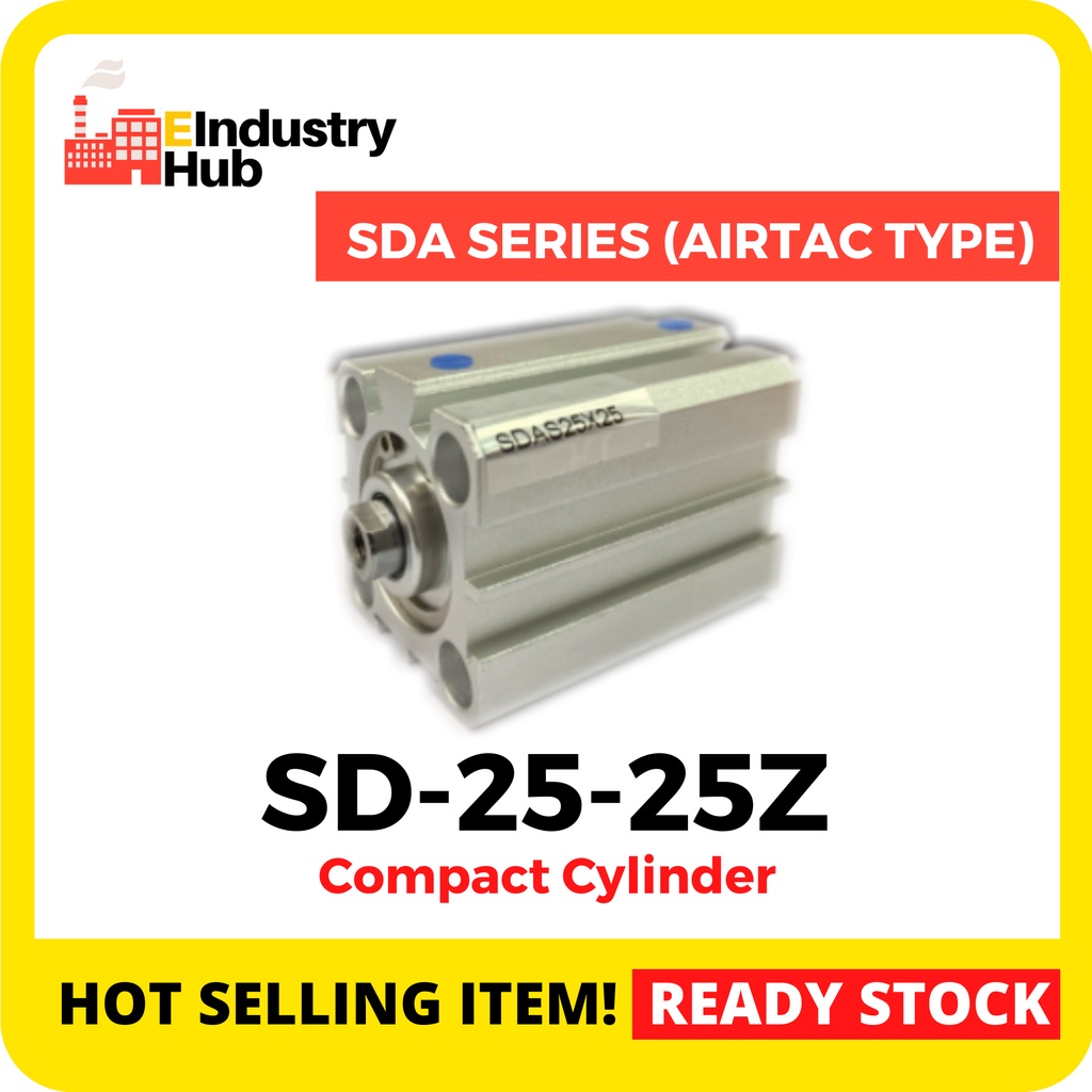 SD-25-25Z Compact Cylinder Double-Acting Pneumatic Air Cylinder, 25mm Bore 25mm Stroke Aluminum Bore Cylinder