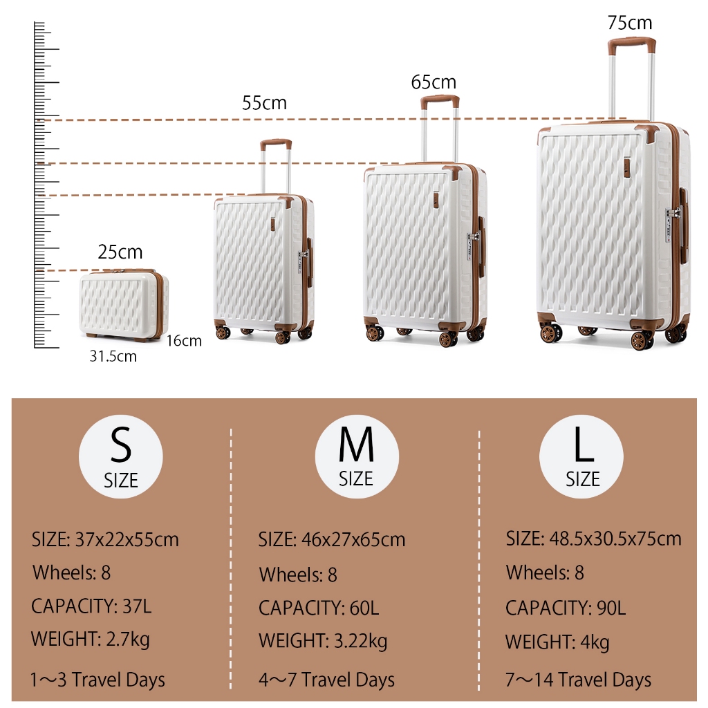 SEA CHOICE 2021 Set Beg Perjalanan Ringan dengan set 13"/20"/24"/28" Beg Keras Bahan PC & Kunci TSA
