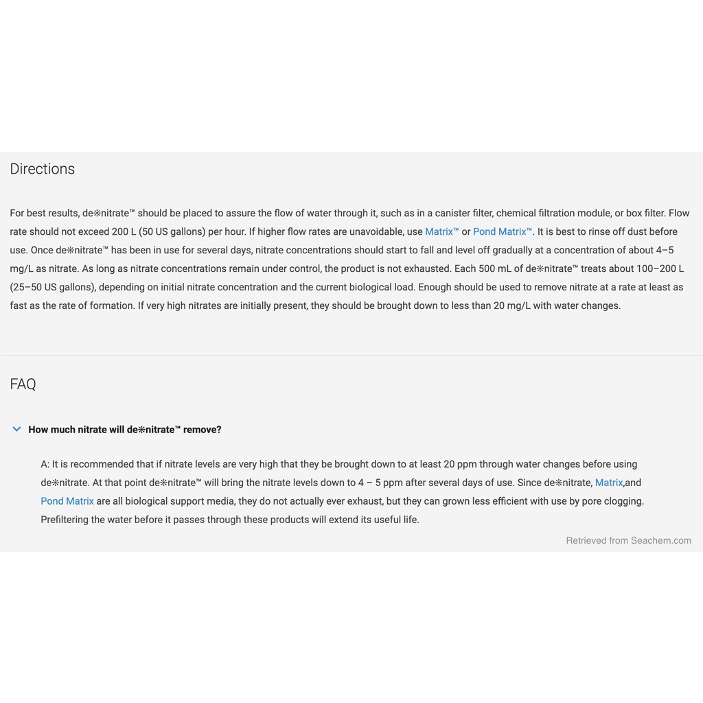 SEACHEM DeNitrate [FAST SHIPPING + READY STOCK] Nitrates, nitrites, ammonia, and organics remover 250ml