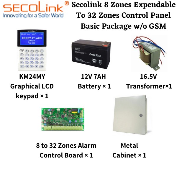 SECOLINK PAS832M-24MY-NP 8 Zones Expendable To 32 Zones Burglar Alarm Control Panel Basic Package