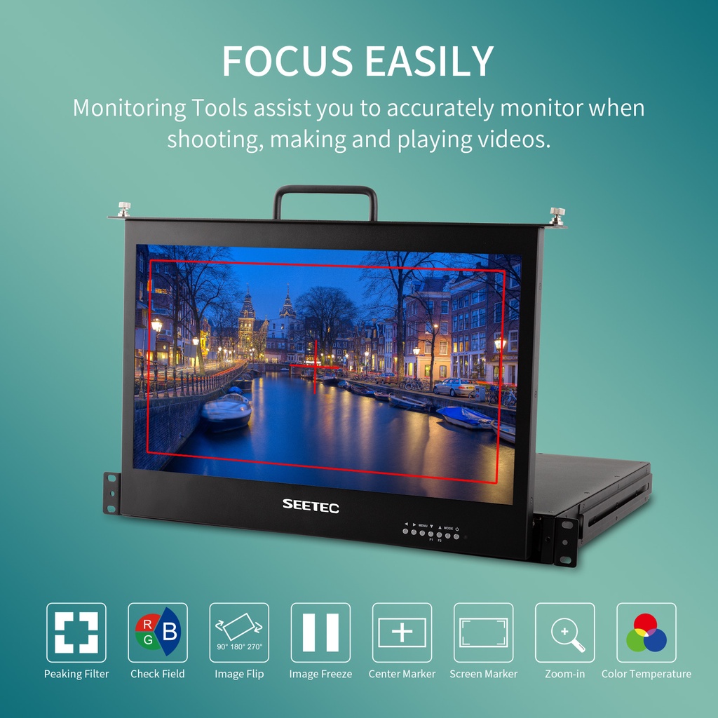 SEETEC SC173-HSD-56 17.3 Inch 1RU Pull Out Rack Mount Broadcast Monitor Full HD 1920x1080 LCD Monitor SDI HDMI DVI VGA YPbPr Video Audio