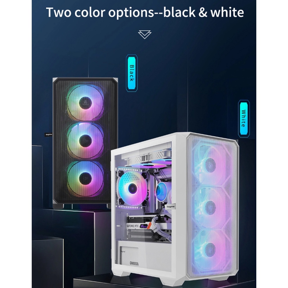 SEGOTEP ALPHA TEMPERED GLASS M-ATX GAMING PC CASE WITH 4xARGB FANS (BLACK / WHITE) MESH FRONT PANEL