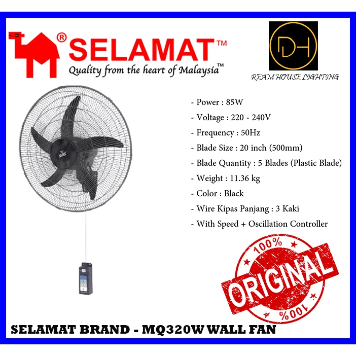 SELAMAT 20" MQ-320W / MQ-220W Kipas Gantung Kipas Dinding Wall Fan Angin Kuat