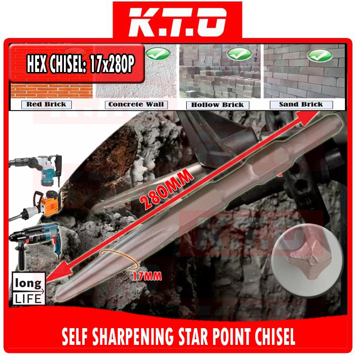 SELF SHARPENING SDS HEX CHISEL SHANK STAR POINT DRILL BIT WALL CONCRETE BRICKS HACKER BREAKER DEMOLITION HAMMER