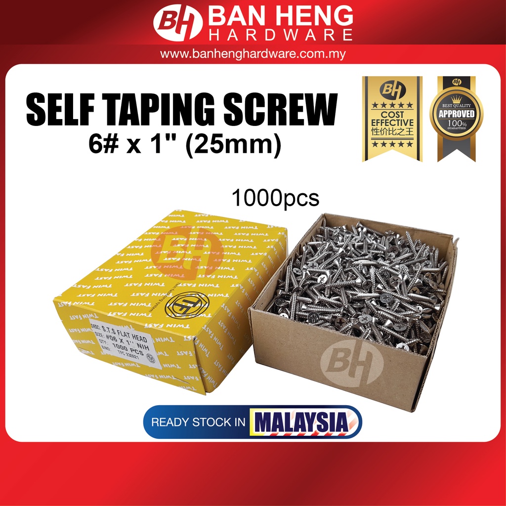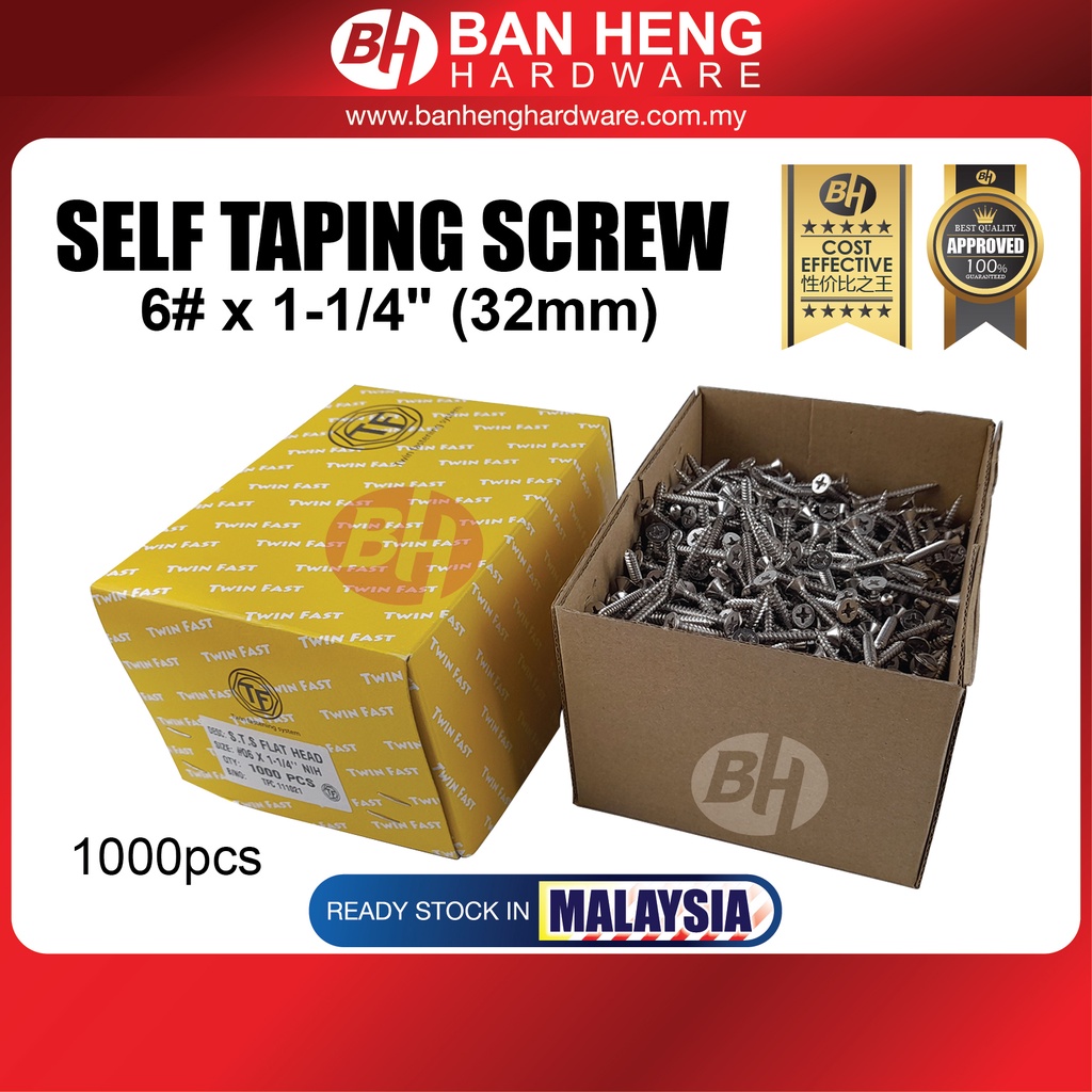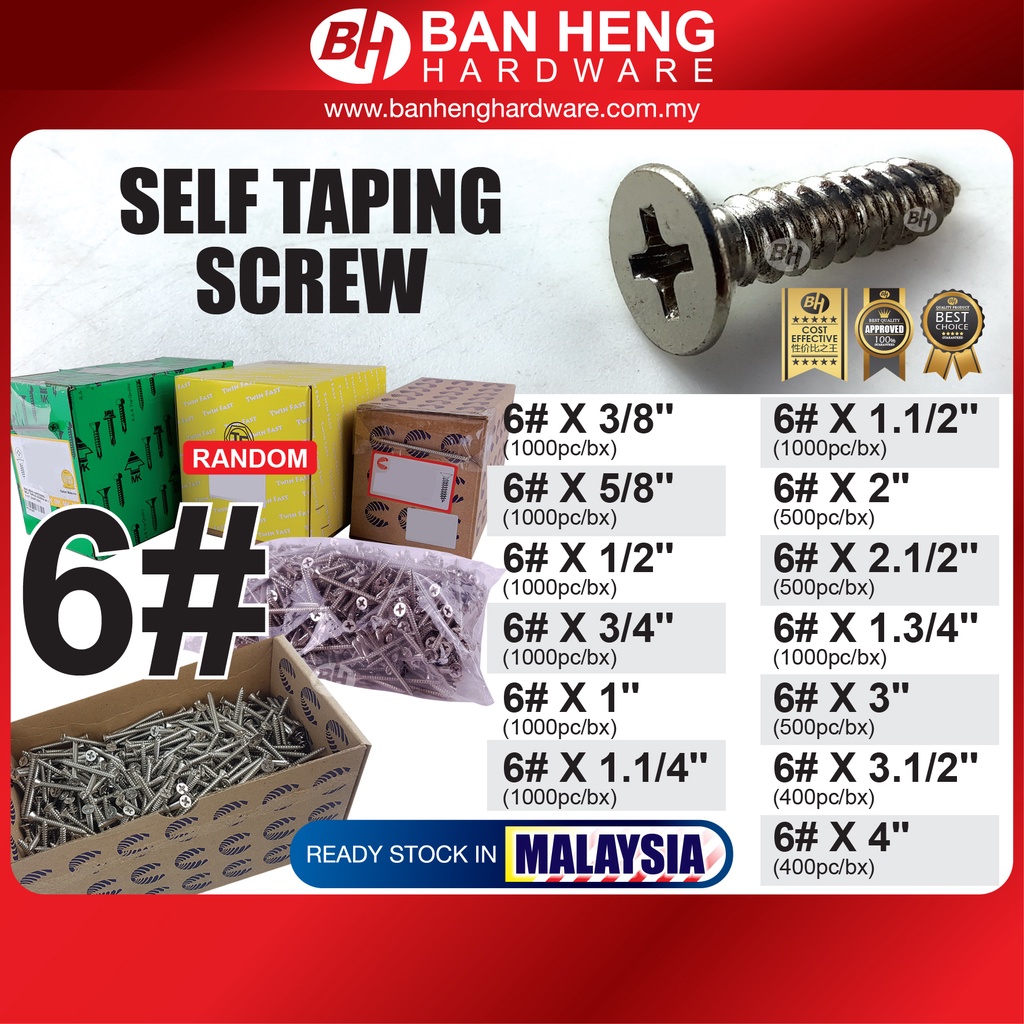 SELF TAPPING SCREW 6# x 3/8" / 5/8" / 1/2" / 3/4" / 1.1/4" / 1.3/4" / 1.1/2" / 2" / 2.1/2" / 3" / 3.1/2" / 4"