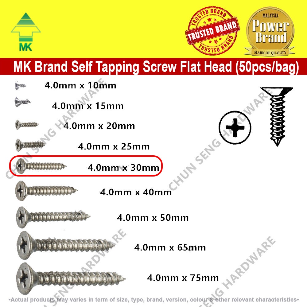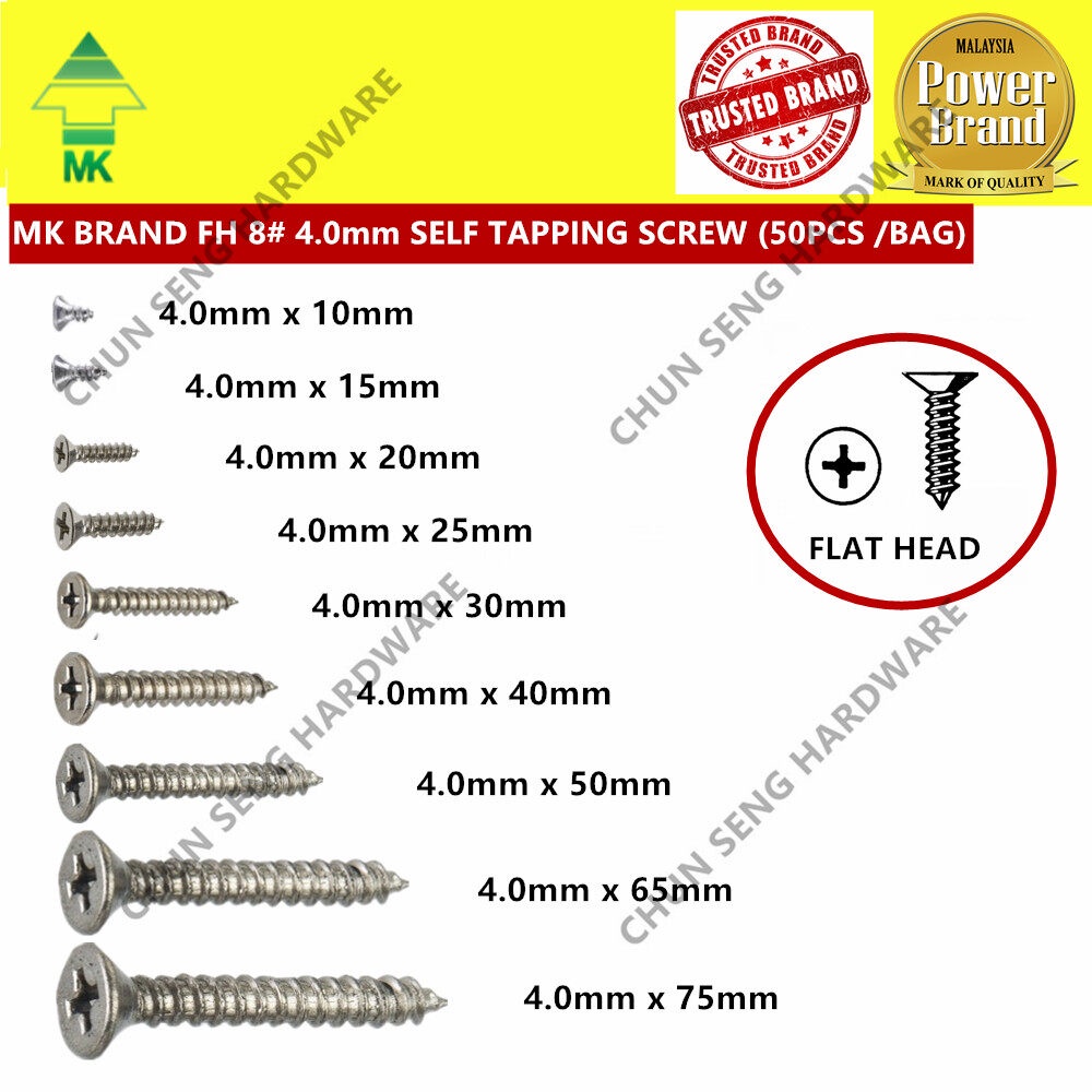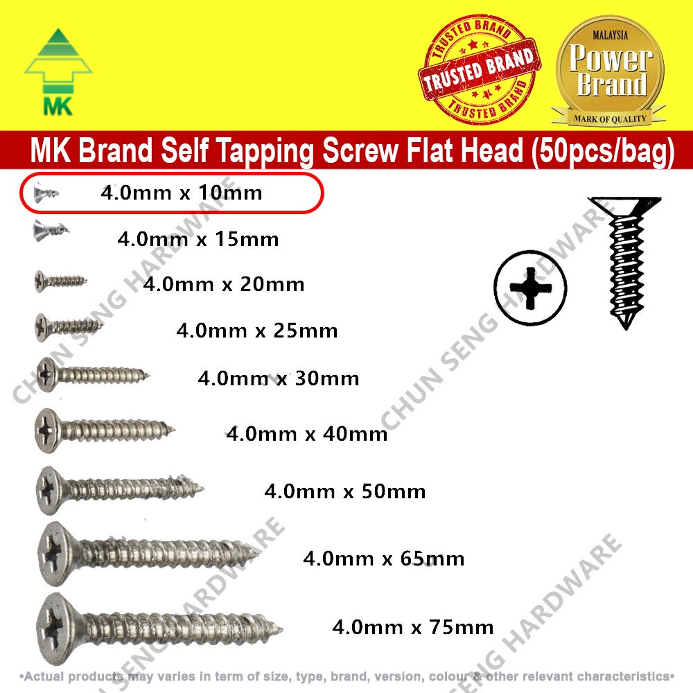 SELF TAPPING SCREW FLAT HEAD FH 8# 4.0mm (50PCS / BAG)