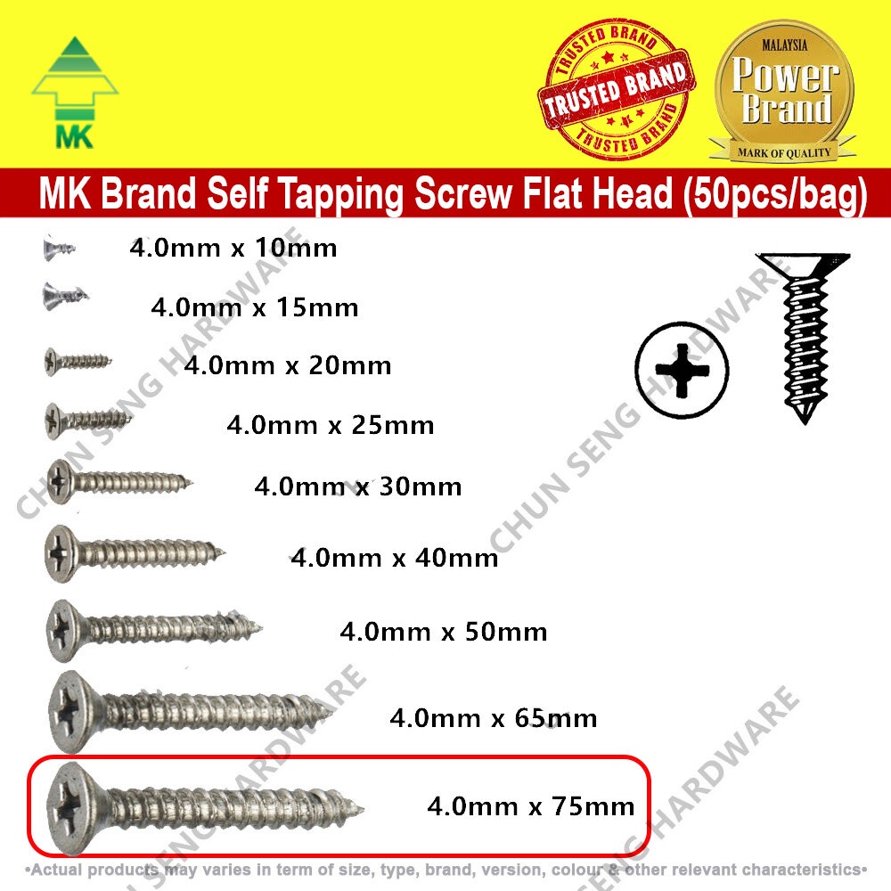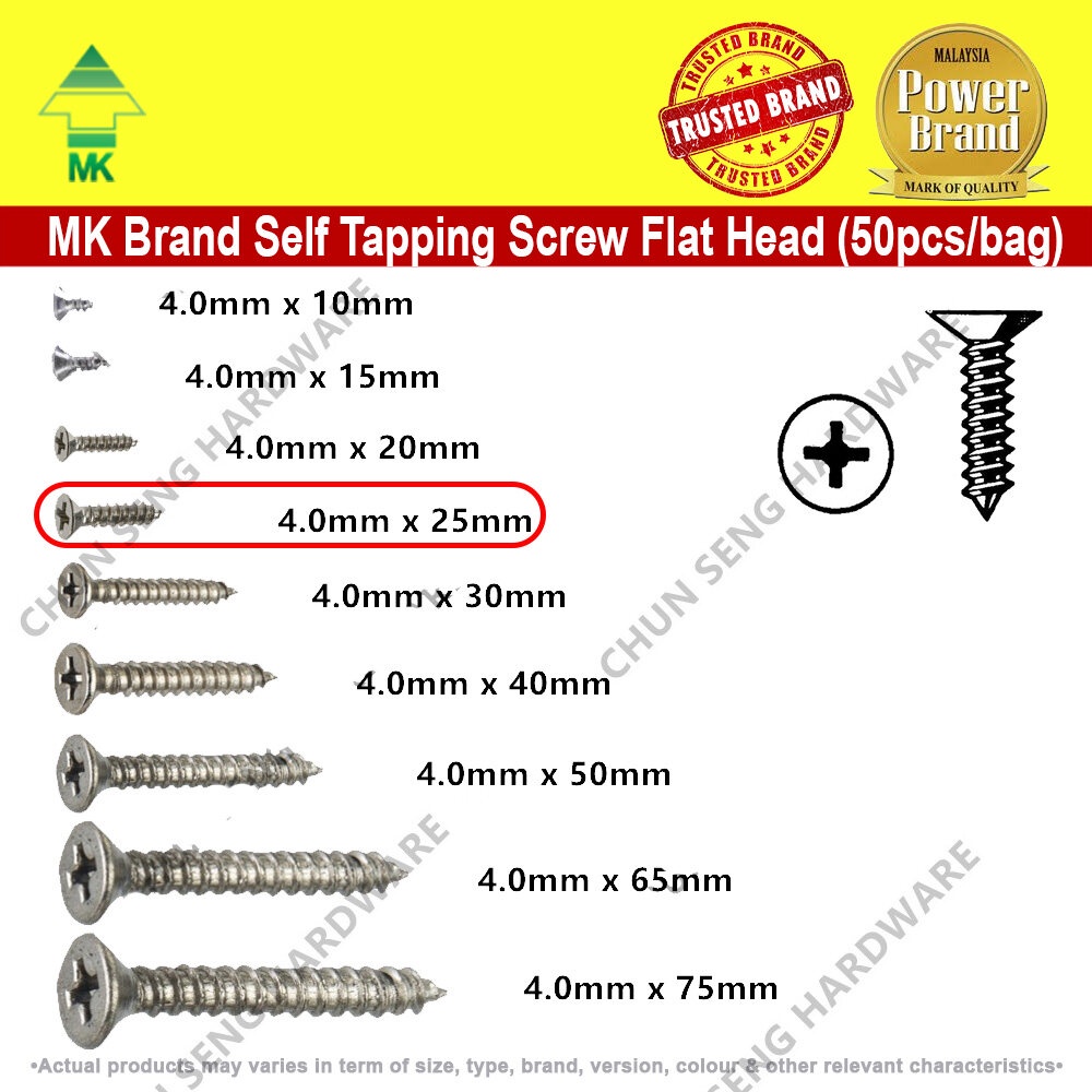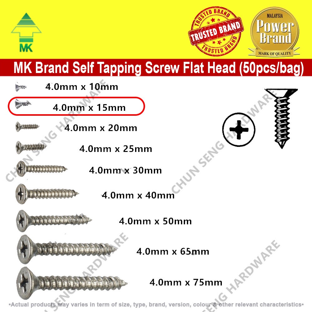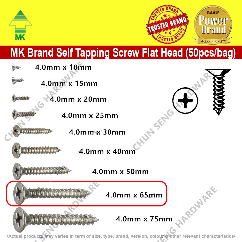 SELF TAPPING SCREW FLAT HEAD FH 8# 4.0mm (50PCS / BAG)