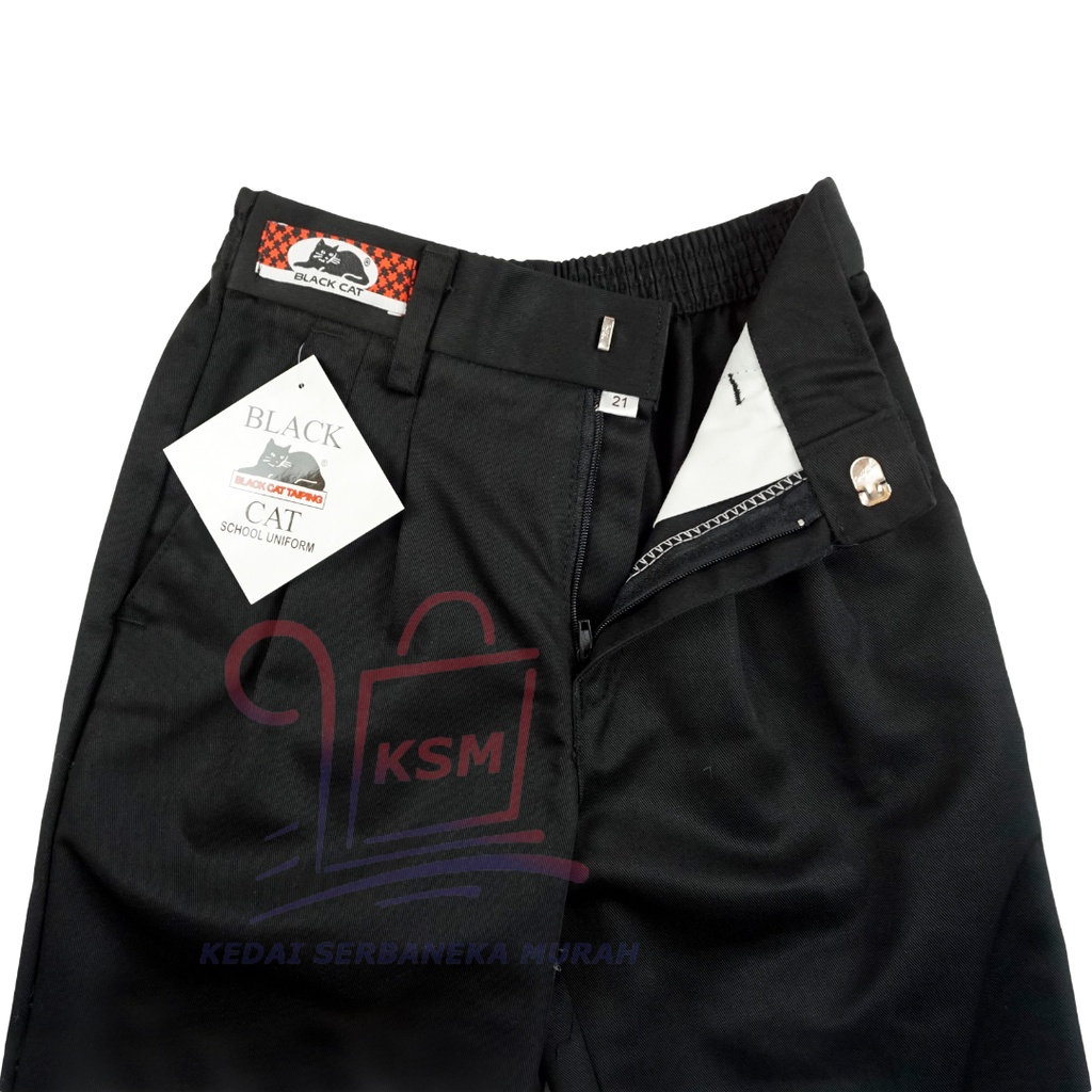 SELUAR HITAM PANJANG PINGGANG GETAH COTTON SEKOLAH RENDAH - BAJU SEKOLAH JENAMA BLACK CAT / VINTER - BC024G