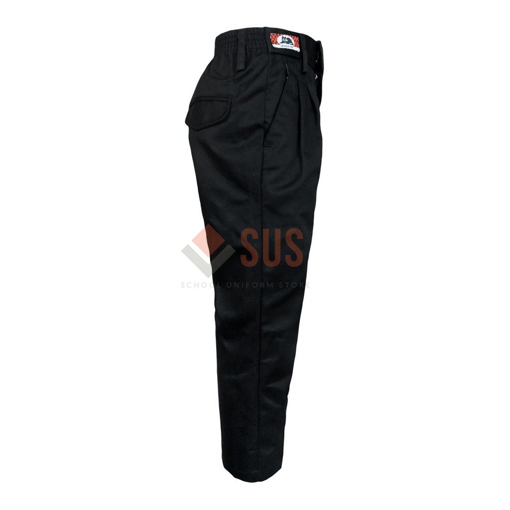 SELUAR HITAM PANJANG PINGGANG GETAH COTTON SEKOLAH RENDAH - BAJU SEKOLAH JENAMA BLACK CAT / VINTER - BC024G