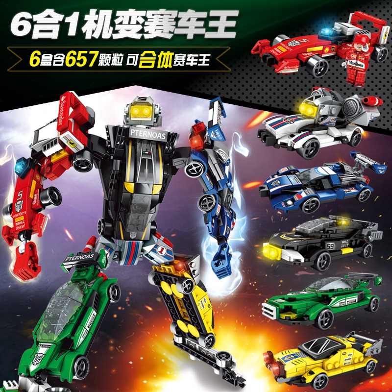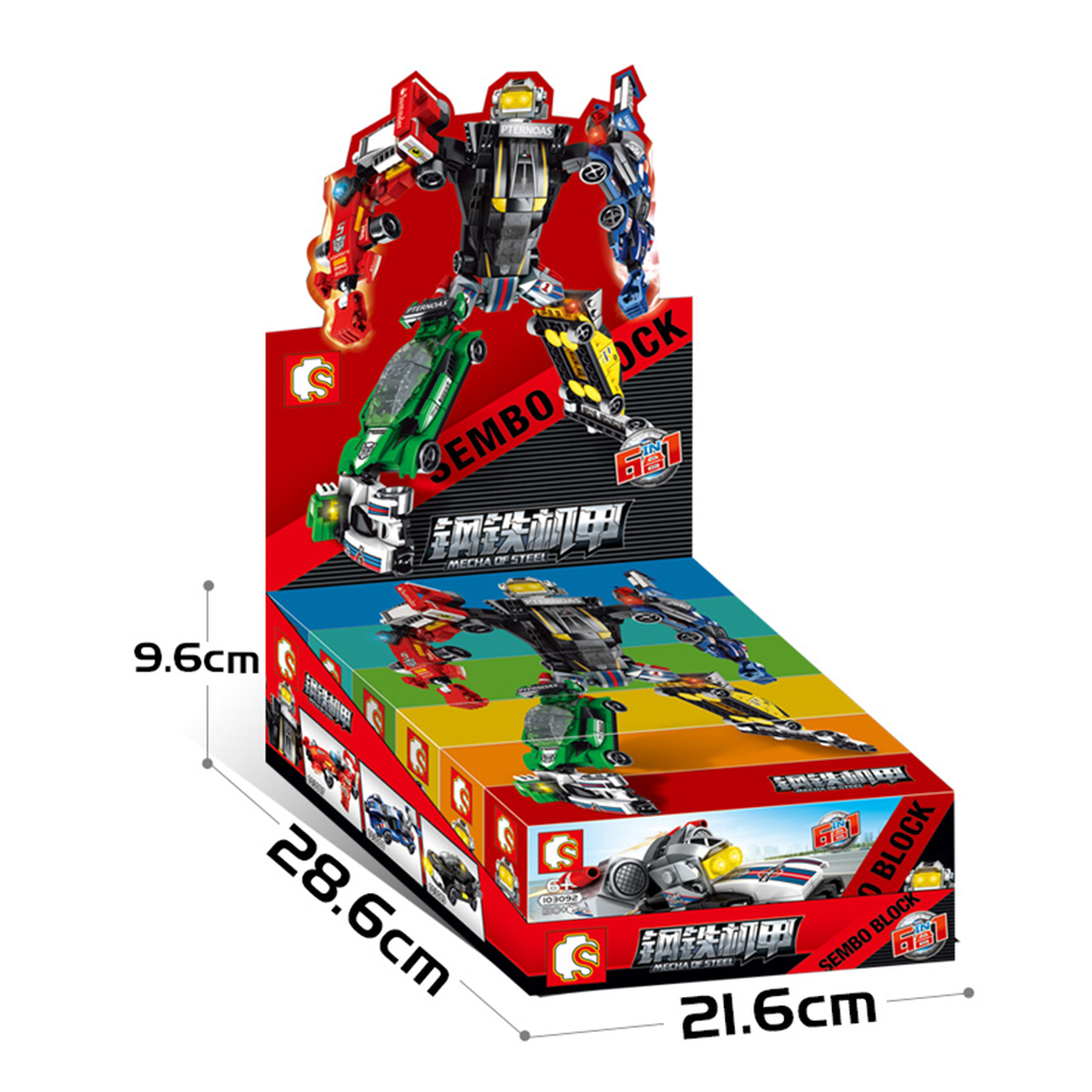 SEMBO BLOCK SET OF STEEL ROBOT TRANSFORMER 6 IN 1 ROBOT TRANSFORMER VEHICLE SPORT CAR 103087 - 103092