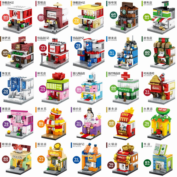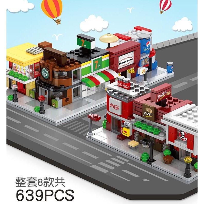 SEMBO BLOCK The Mini Street View City Series (Lego Compatible) 7-11/PIZZA SHOP/STARBUCKS COFFEE/MC DONALD'S/KFC/COLA
