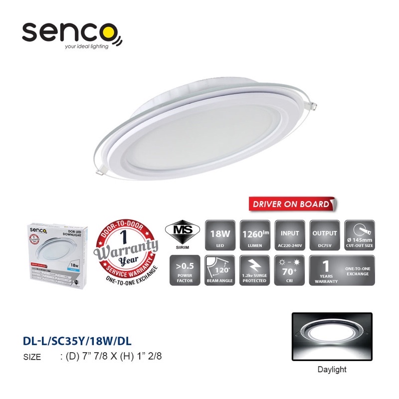 SENCO SC35Y 12W/18W 4"/6" Glass Frame LED Downlight Round [SIRIM CERTIFICATED]