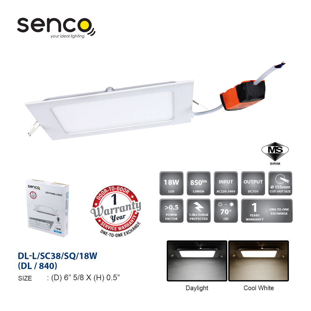 SENCO SC38 12W/18W 4"/6" ROUND/SQUARE ULTRASLIM LED DOWNLIGHT [SIRIM CETIFICATED]