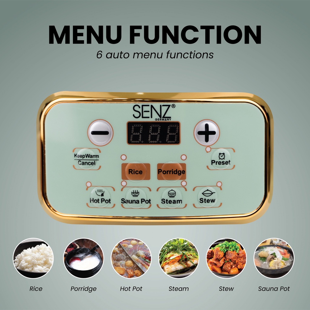 SENZ 6 in 1 MultiCooker with Pressure Cooker Function SZ-PC618 RICE STEAM PORRIDGE STEW SAUNA HOTPOT TOPELEC