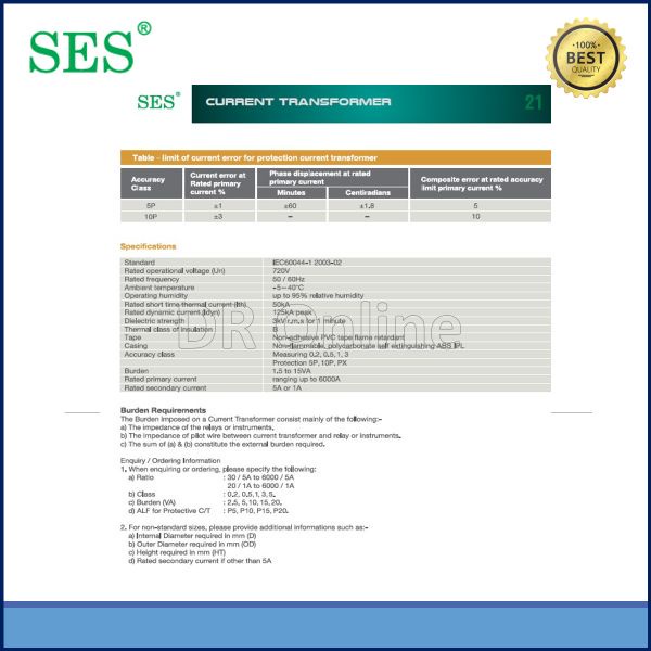 SES Current Transformer CT COIL Class 3 ,5VA ,60A,100A,150A,200A,250A,300A,400A,500A,600A,800A,1000A,1200A