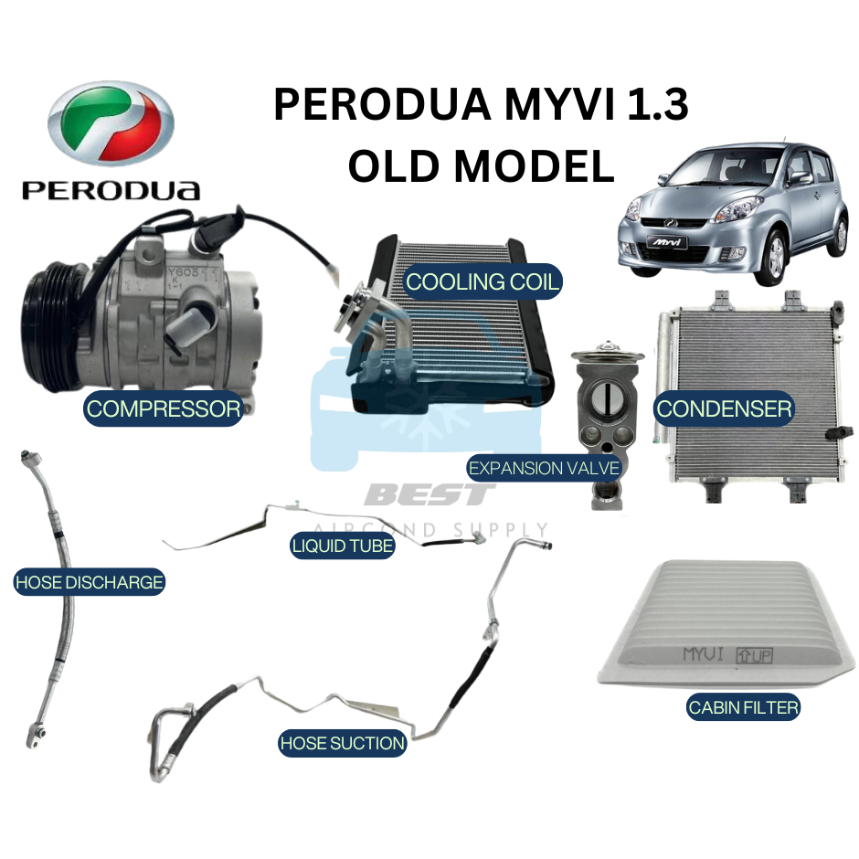 🔥COMBO FULL SET🔥Perodua Myvi 2008 1.3 A/C Compressor Local , Valve Sanden Original,Cooling Coil Local , Condenser Local