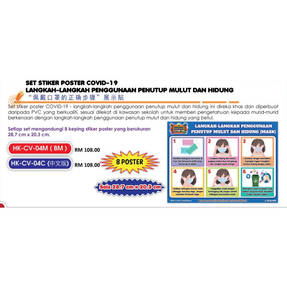 SET STIKER POSTER COVID-19 LANGKAH-LANGKAH PENGGUNAAN PENUTUP MULUT DAN HIDUNG HK-CV-04M / HK-CV-04C