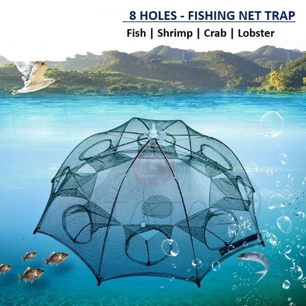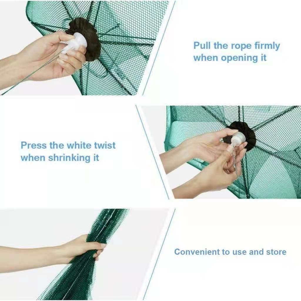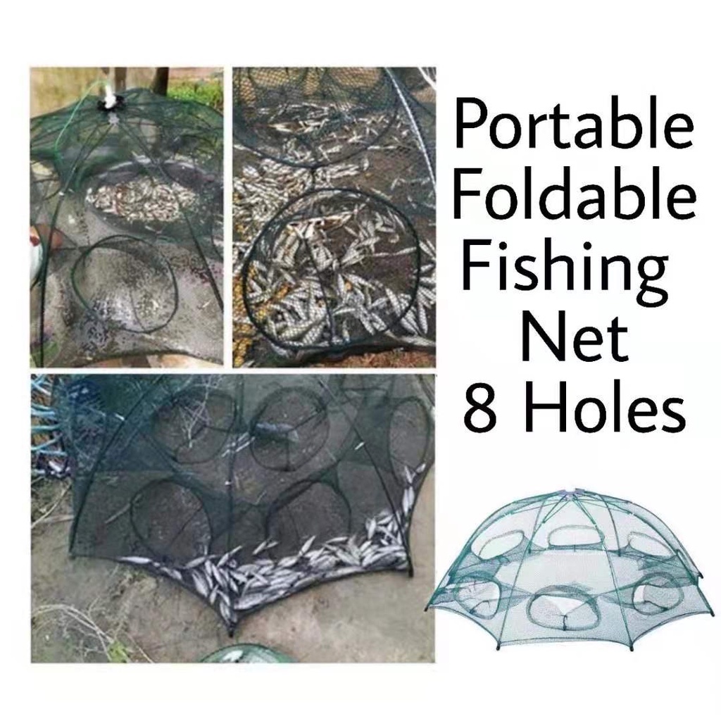 SF_ 8Holes Retractable Portable Fishing Net Fish Net Cage Foldable Fishing Bait Trap Nylon Mesh Fish Net