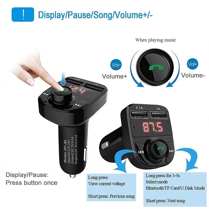 SF_ Car MP3 Player Car Kit Handsfree Bluetooth FM Transmitter LCD USB Charger
