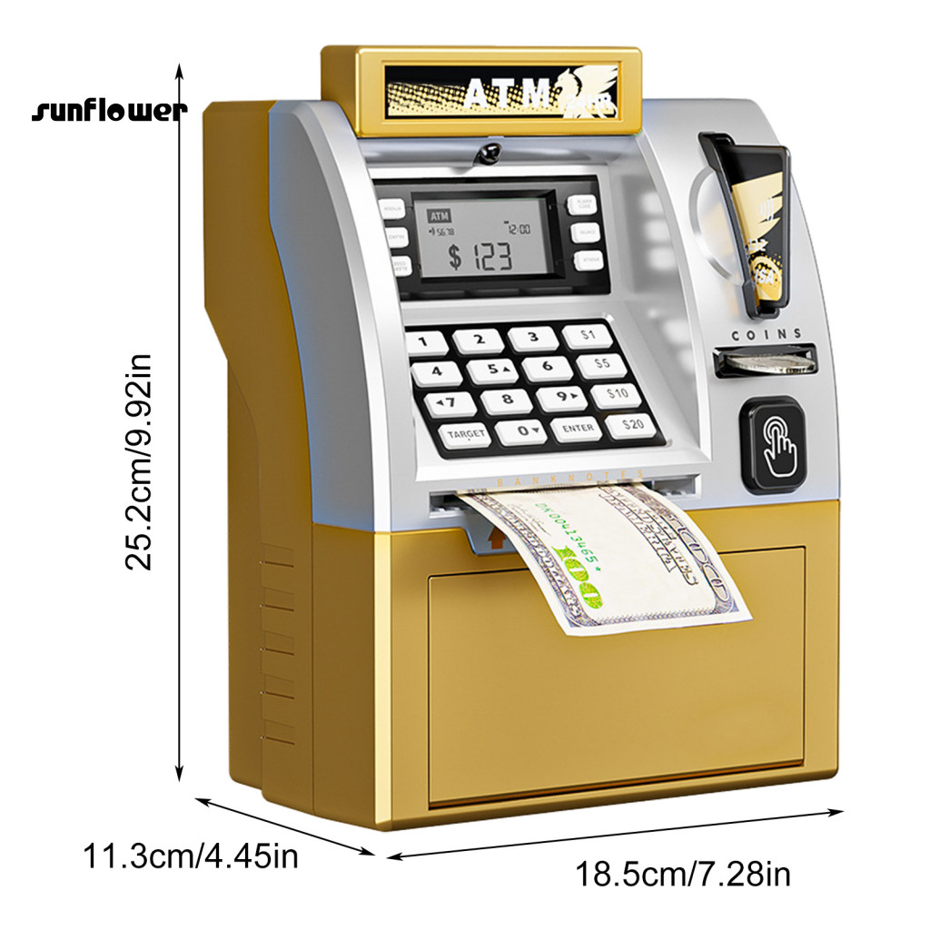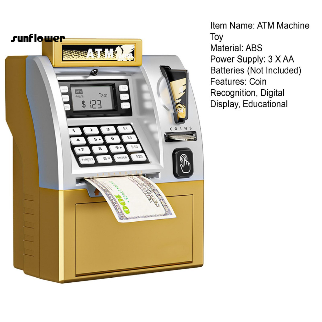 SF_ Educational Atm Toy Atm Machine with Card Kids Atm Piggy Bank Toy with Card Educational Coin Saving Machine for Boys and Girls Fun Gift for Toddlers Southeast Asia