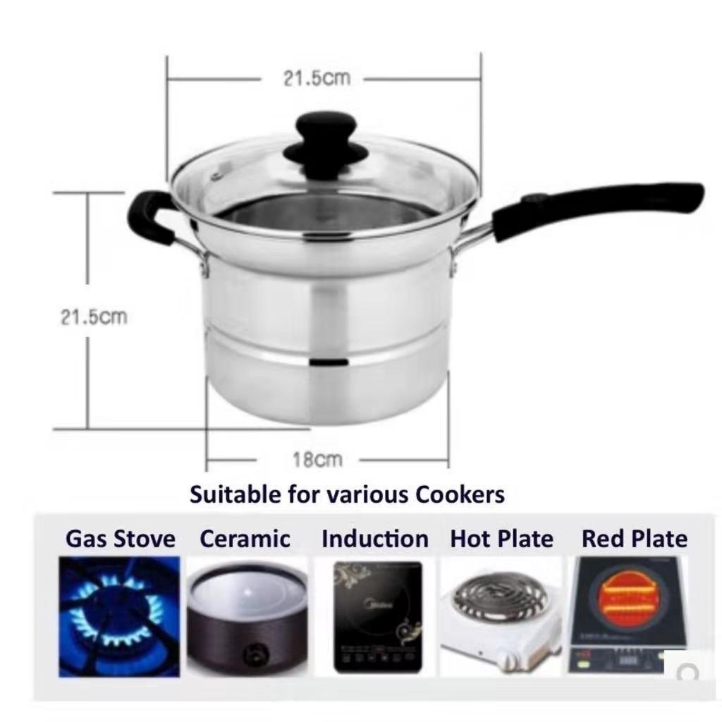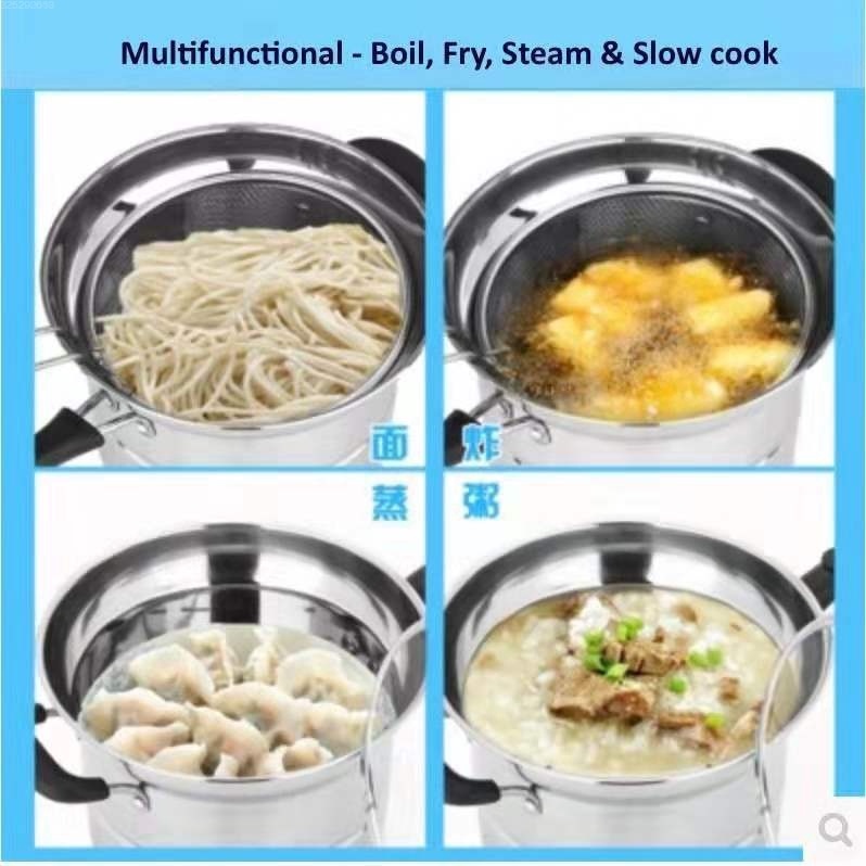 SF_ Stainless Steel Multi Usage Cooking Pot/Deep Fry/Steam/Stew (4 Pcs x 22cm)