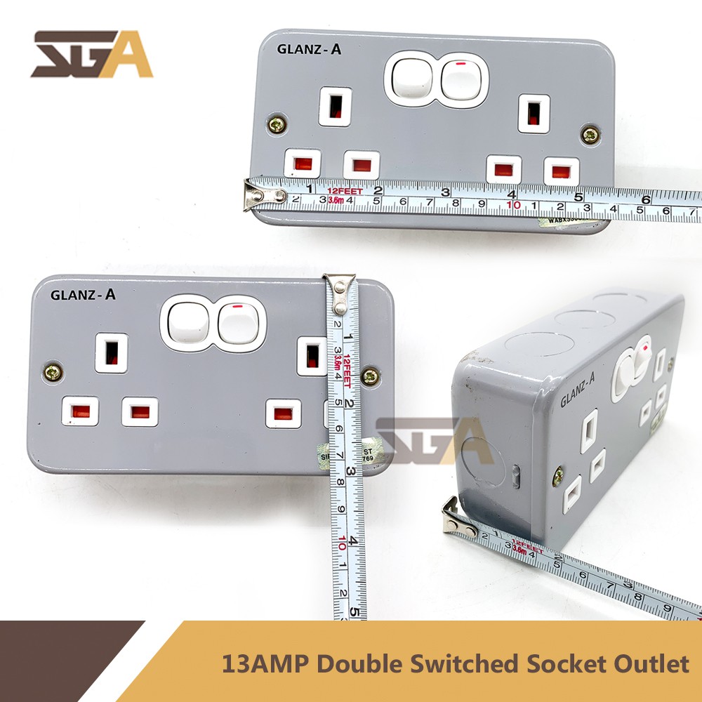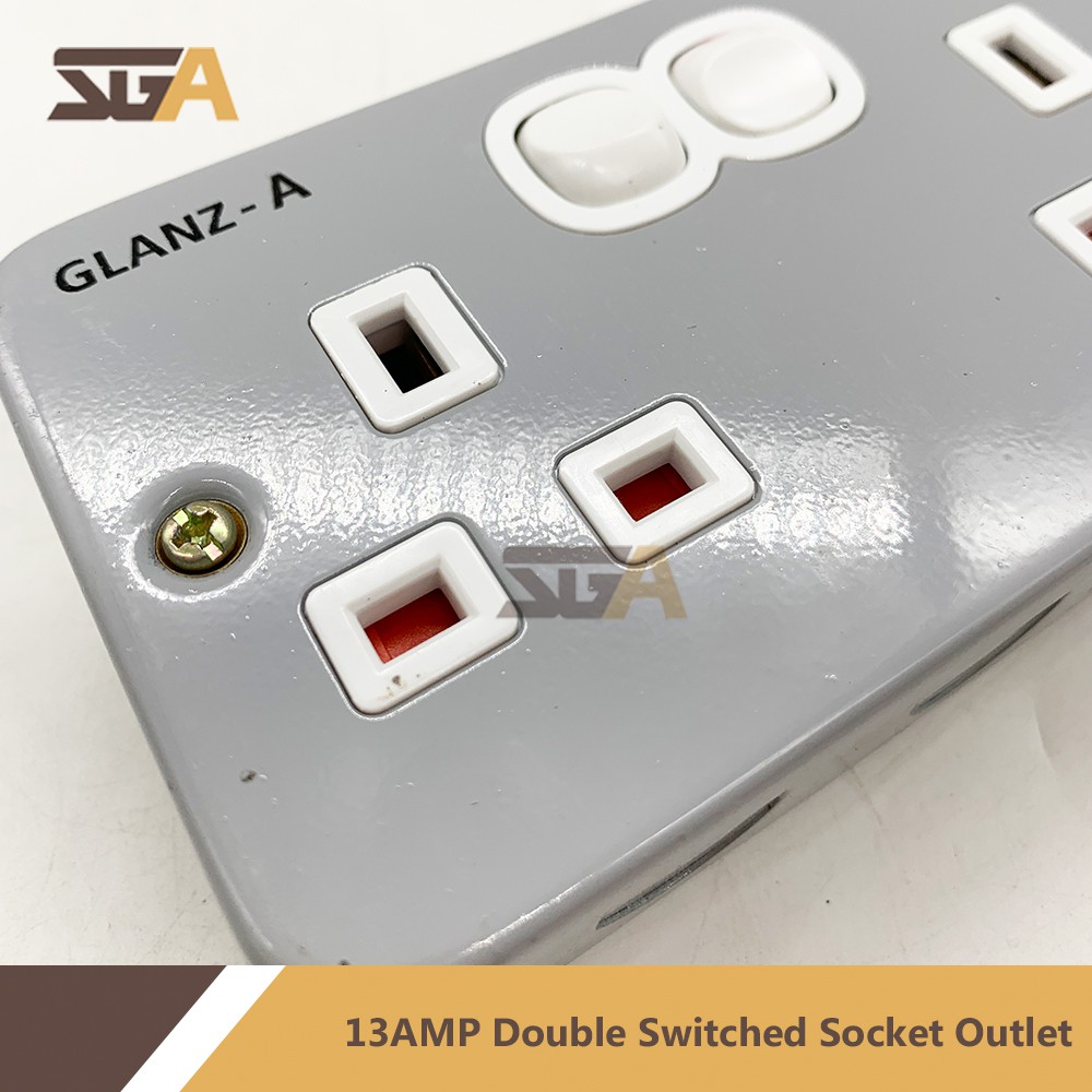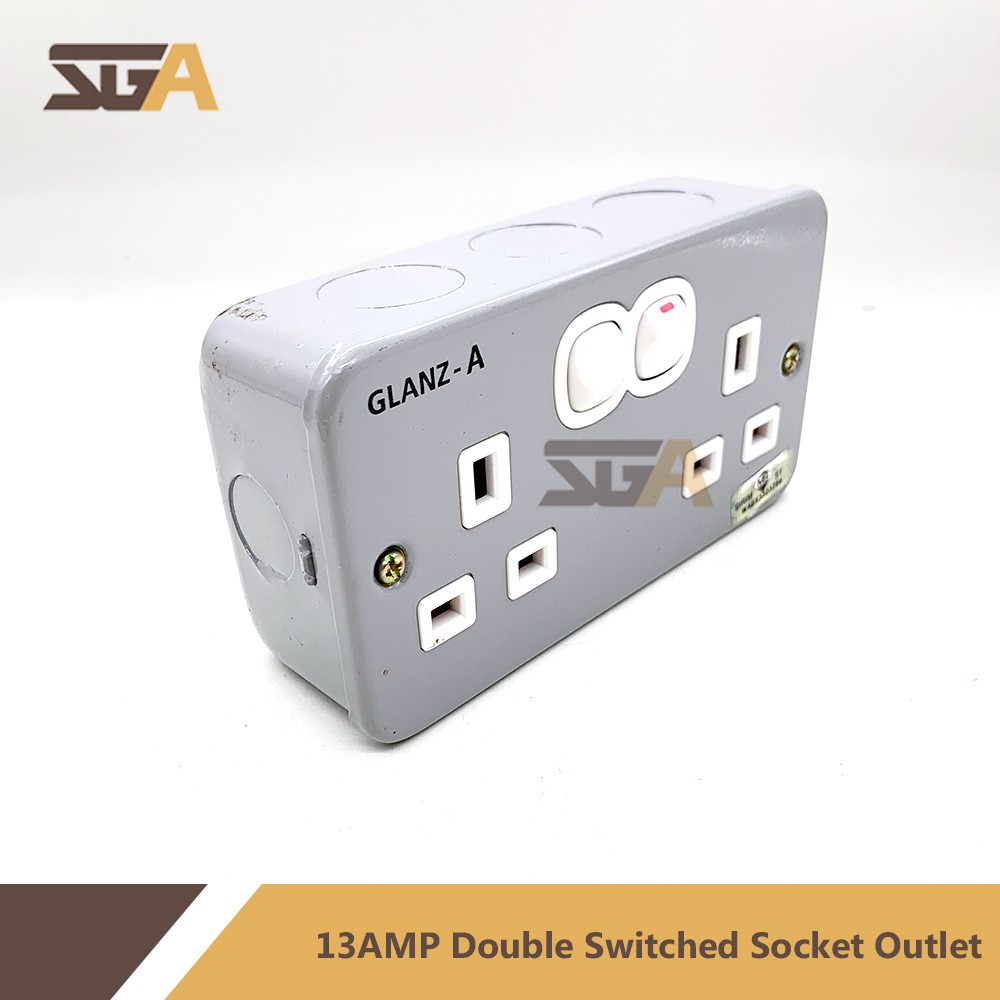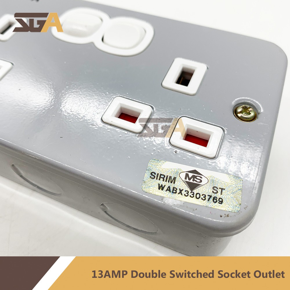 SGA 13AMP Double Switched Socket Outlet Steel Box (Sirim Approved) GLA8219 13amp suis socket electric