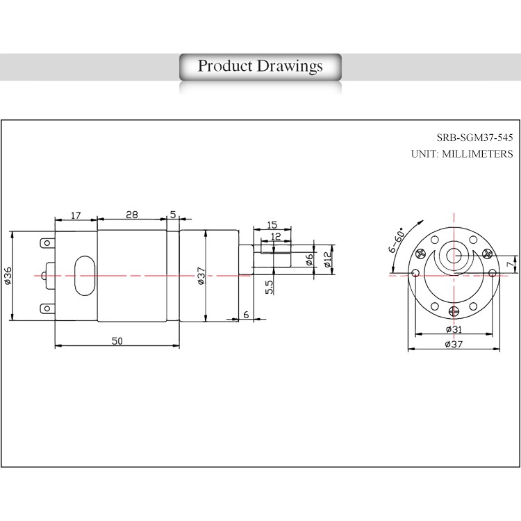 SGM37-545 12V 24V DC 8-1000RPM High Torque Low Rpm DC Motor All Metal Low Noise Gear Motor JGB37-545