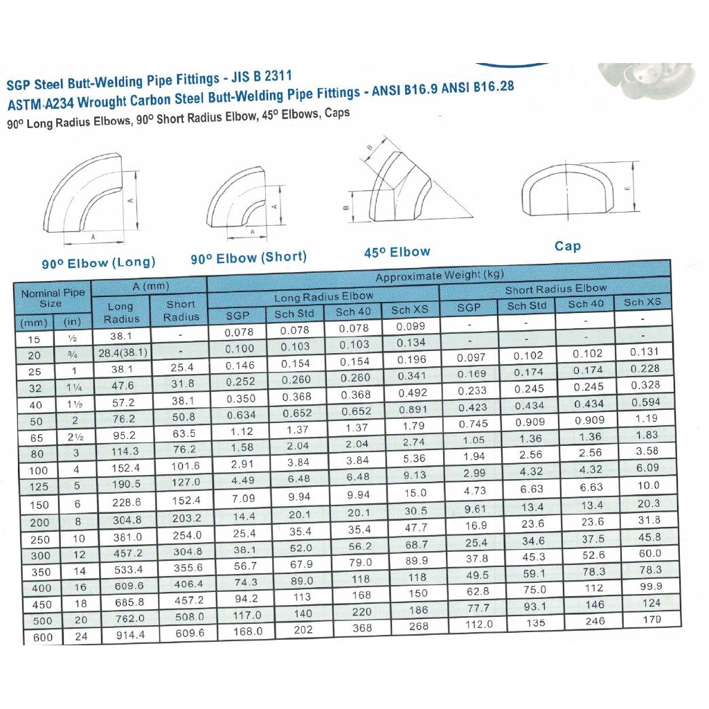 SGP Mild Steel 90 Degree Long Radius Elbow Fitting (1/2" - 4")