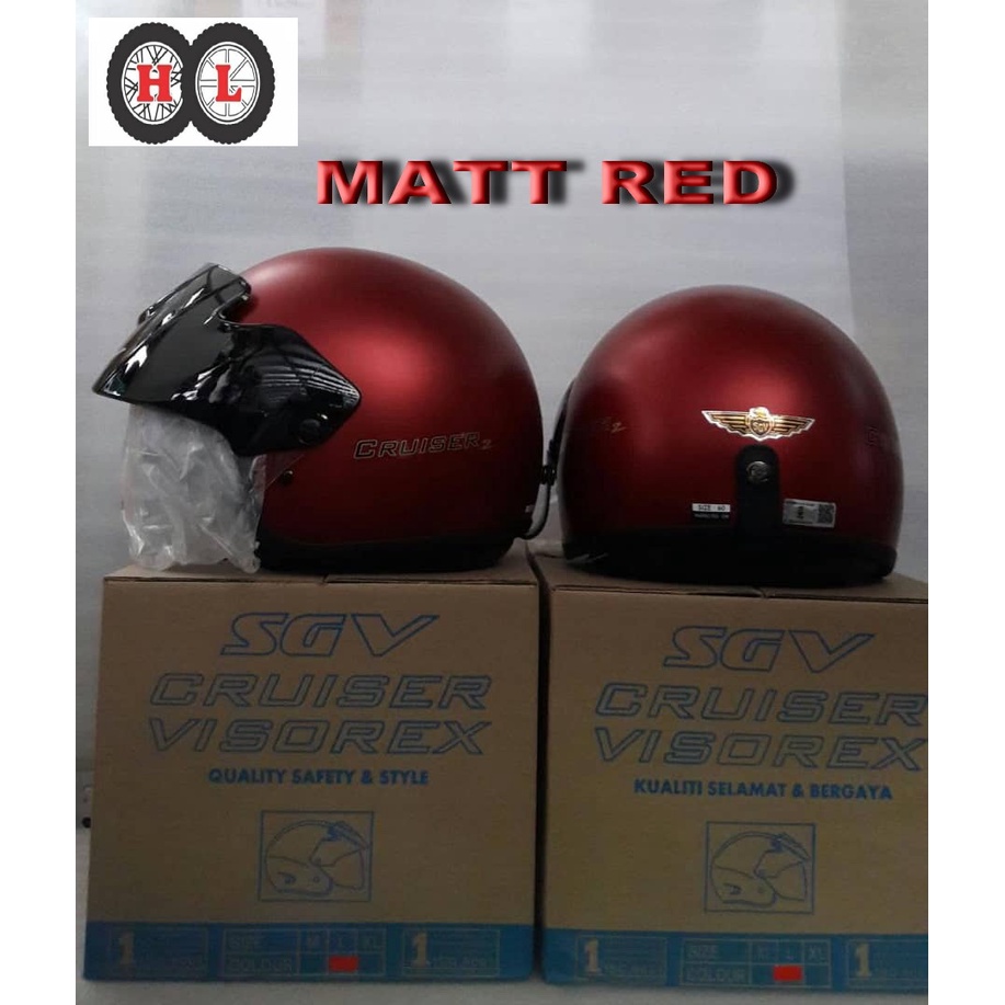 SGV CRUISER MATT VISOREX HELMET ( TOPI KELEDAR SGV Skuter Scooter Steng Separuh /Topi Keledar Wanita)