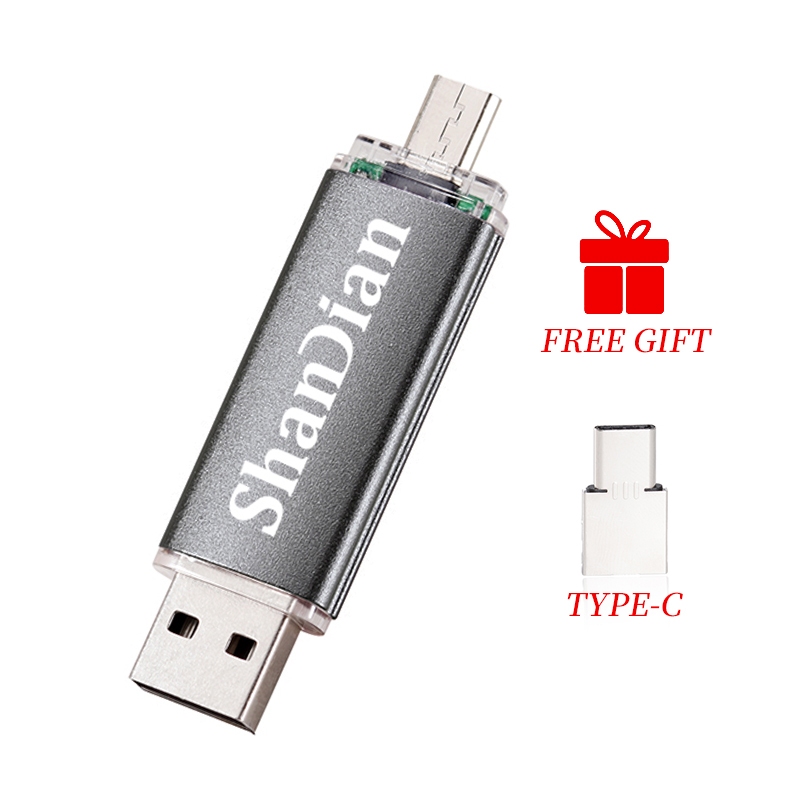 SHANDIAN 2IN1 OTG USB Flash Drive 128GB Free Custom LOGO Pendrive 64GB TYPE-C Adapter Gift Pen Drive 32GB Mini Flashdrive 16GB Black Thumbdrive 8GB Metal Memory Stick 4GB