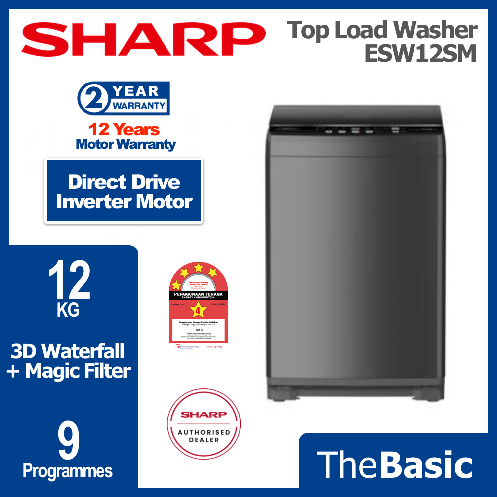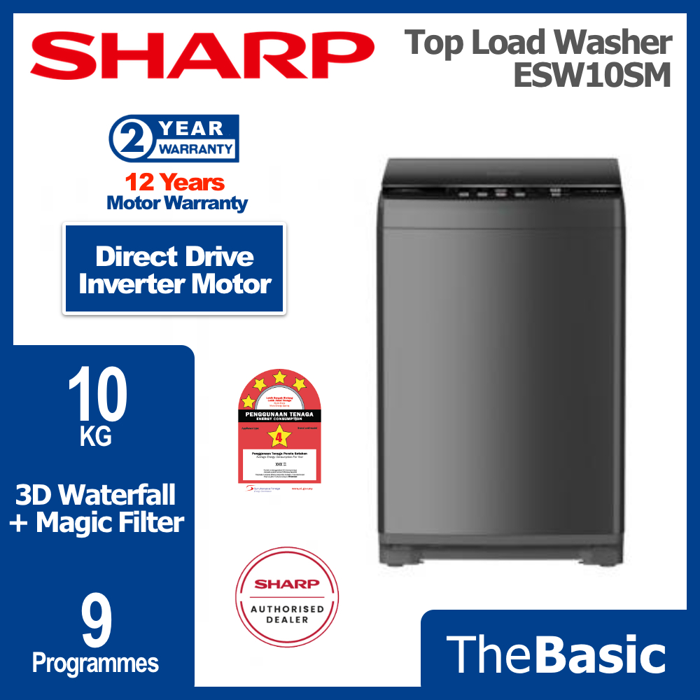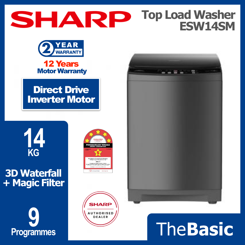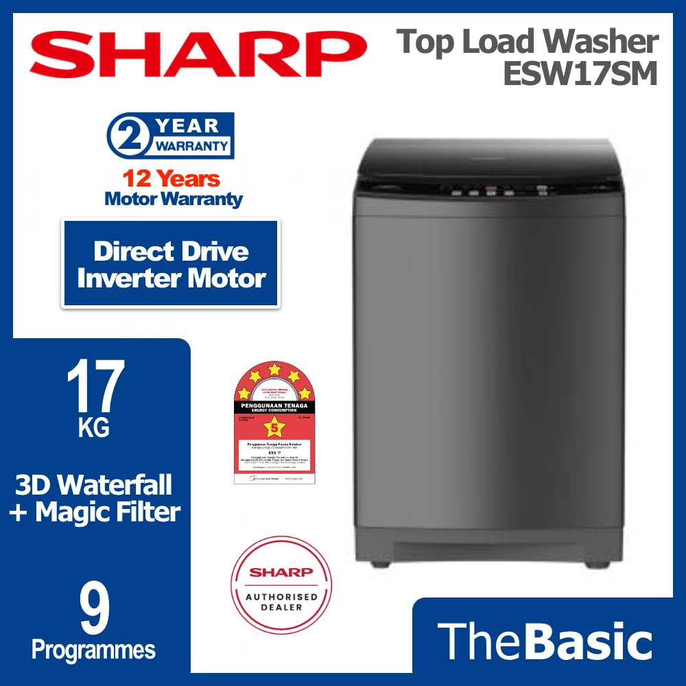 SHARP 10KG - 17KG Fully Auto Inverter Washing Machine Top Load Washer ( ESW10SM / ESW12SM / ESW14SM / ESW17SM )
