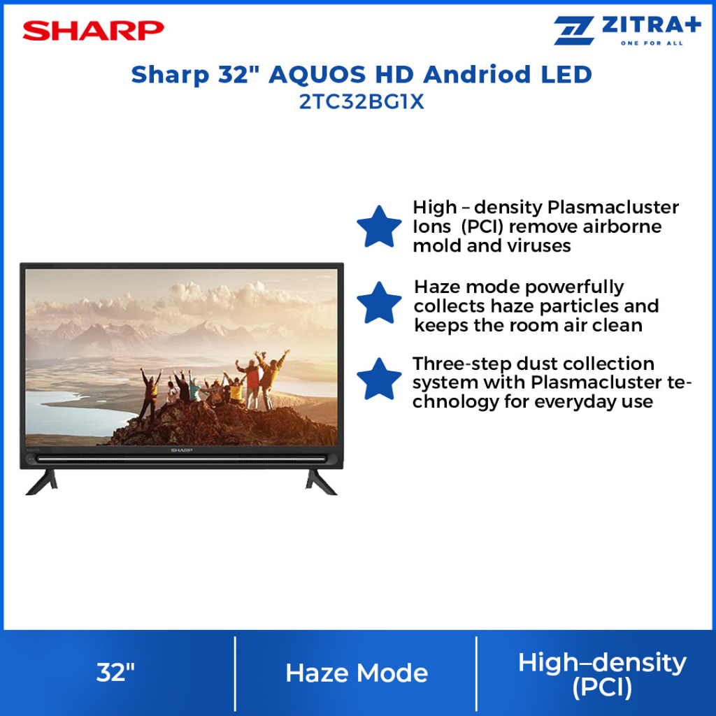 SHARP AQUOS 32" HD Ready Andriod TV 2TC32BG1X | X2 Master Engine | Sound Reflector | Google Assistant | YouTube Netflix