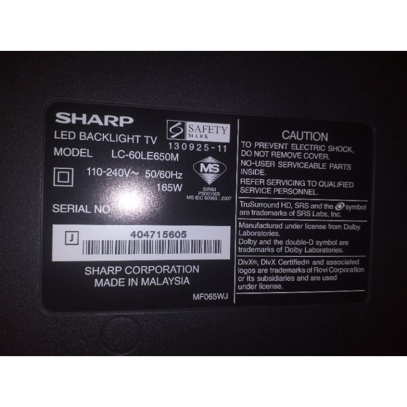 SHARP LC-60LE650M LC60LE650M TV POWER MAIN BOARD RIBBON TCON BOARD LVDS FLEX CABLE MAINBOARD