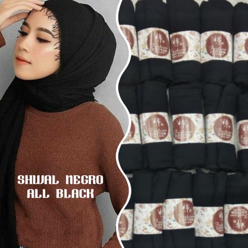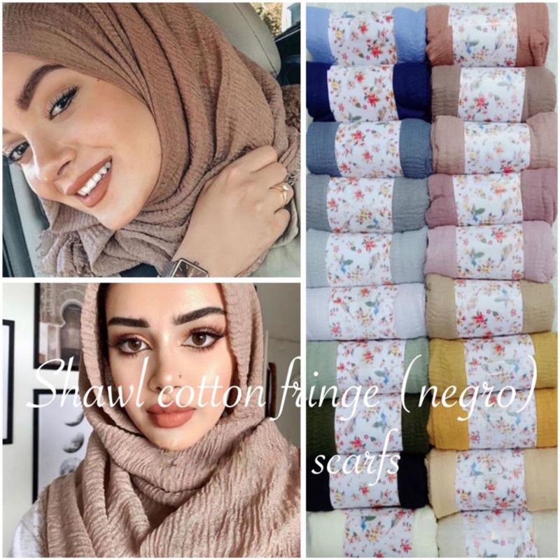 SHAWL COTTON ARABIC FRINGE / SHAWL NEGRO - BORONG 20PCS