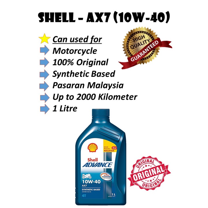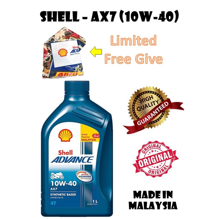 Shell Advance AX7 (10W40) 4T Semi Synthetic (100% ORIGINAL) Engine Oil Motorcycle Pasaran Malaysia / Minyak Hitam Motor