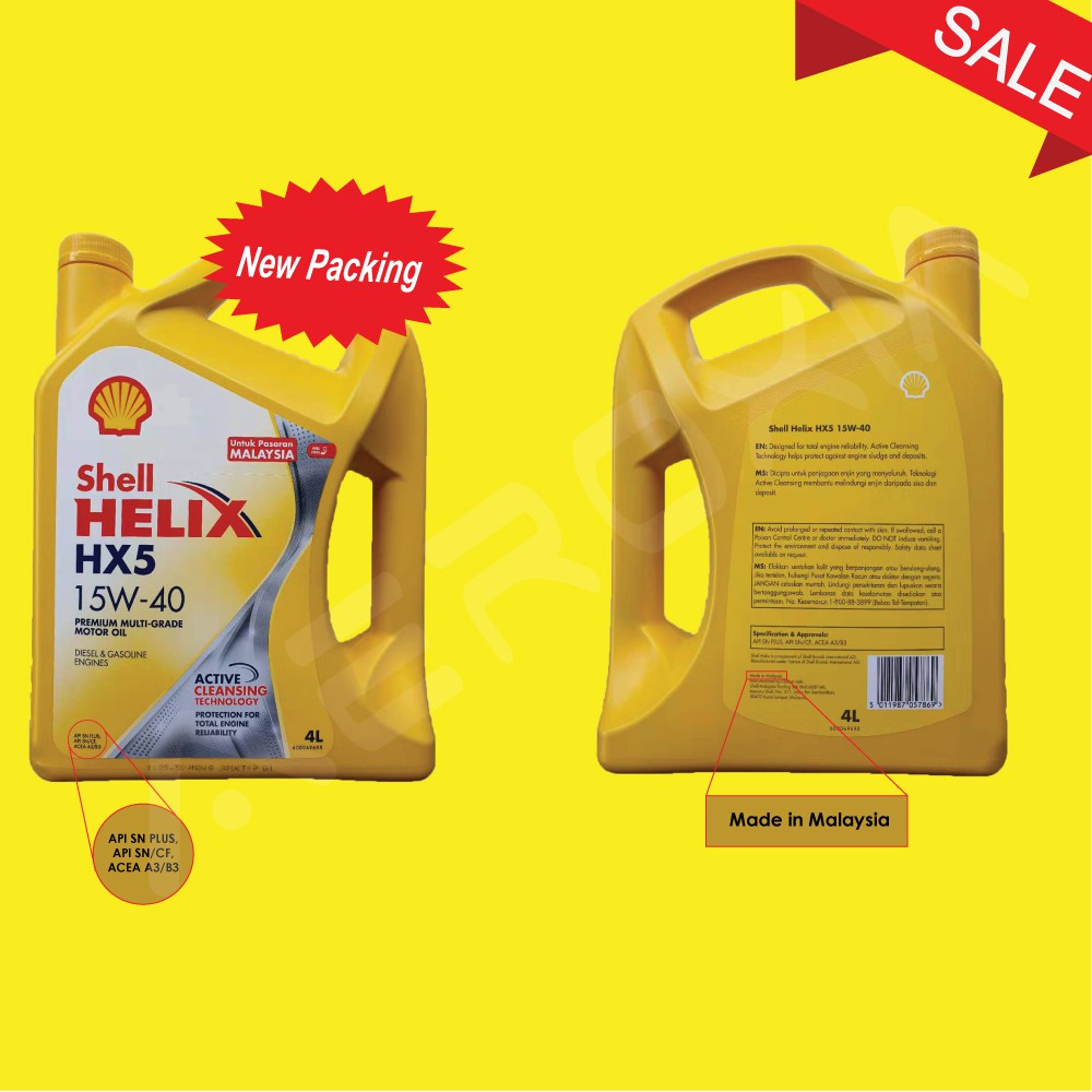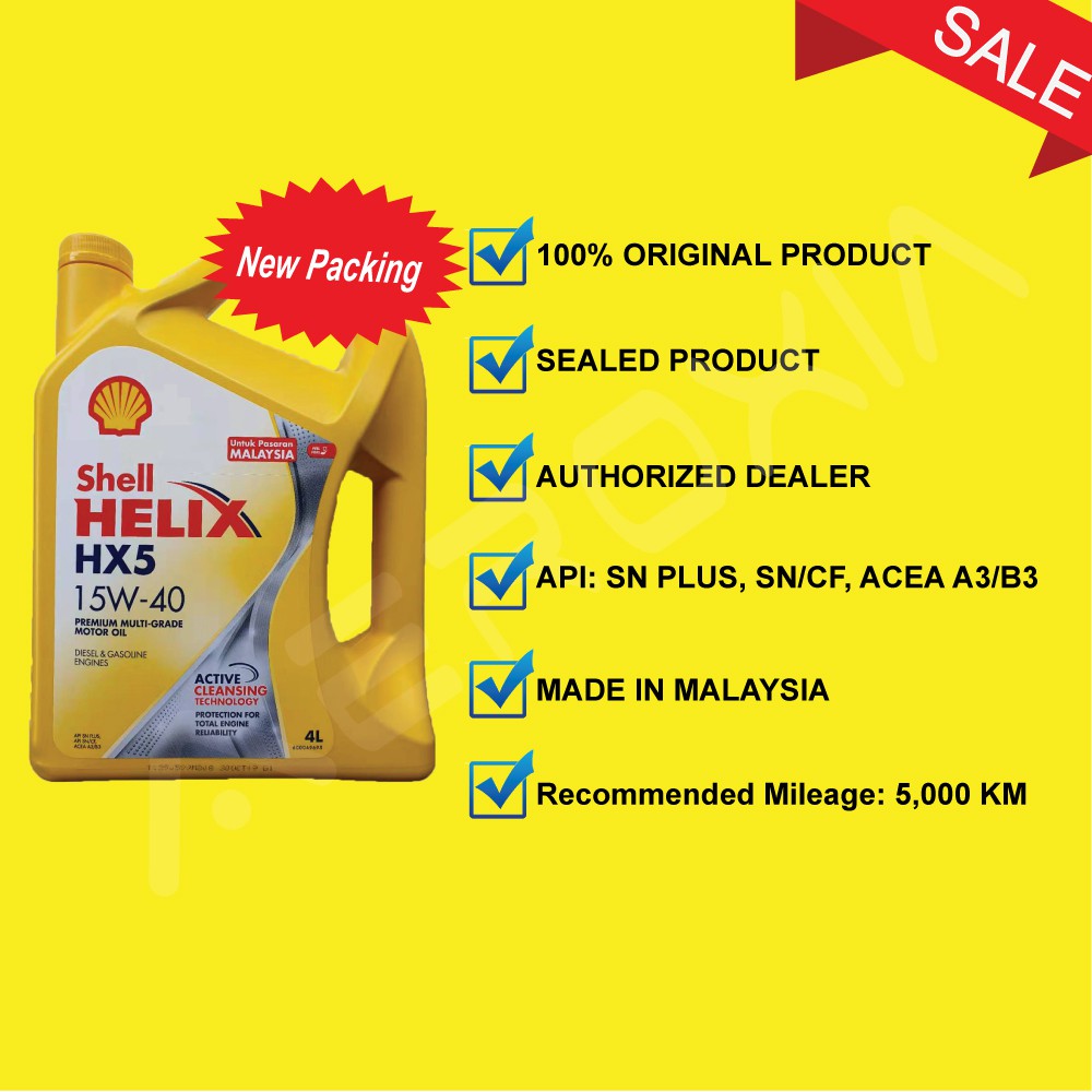 SHELL HELIX HX5 15W40 API SN PLUS SN/CF ACEA A3/B3 ACTIVE CLEANSING 4L