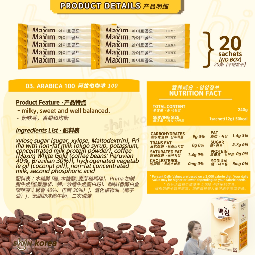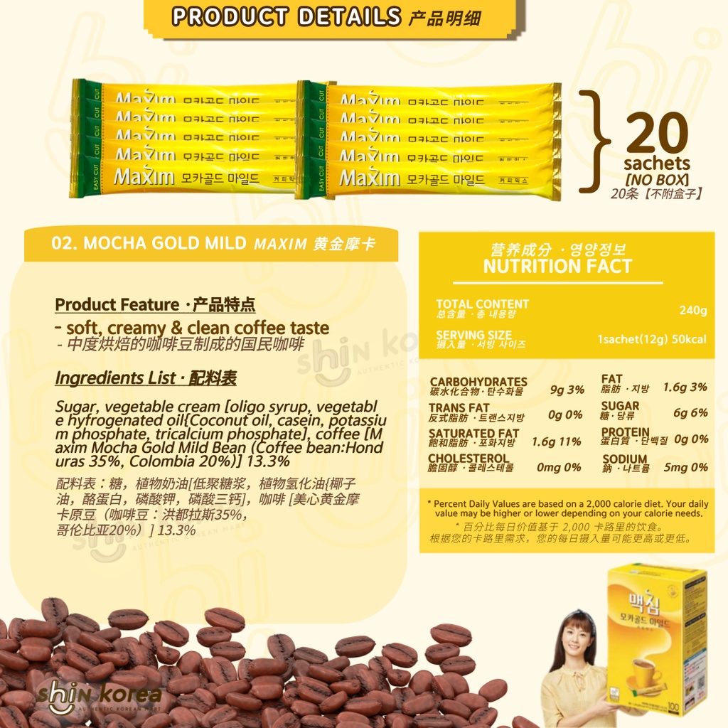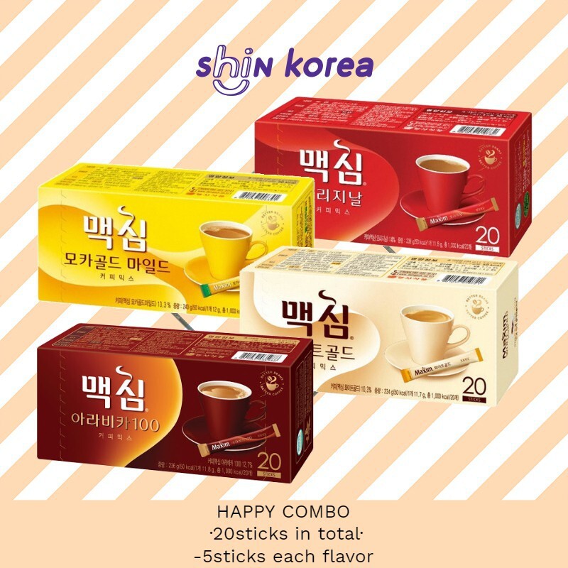 SHIN·KOREA MAXIM COFFEE MIX 20 sticks - original / white gold / mocha gold mild /arabica / ice/ decaffeine coffee