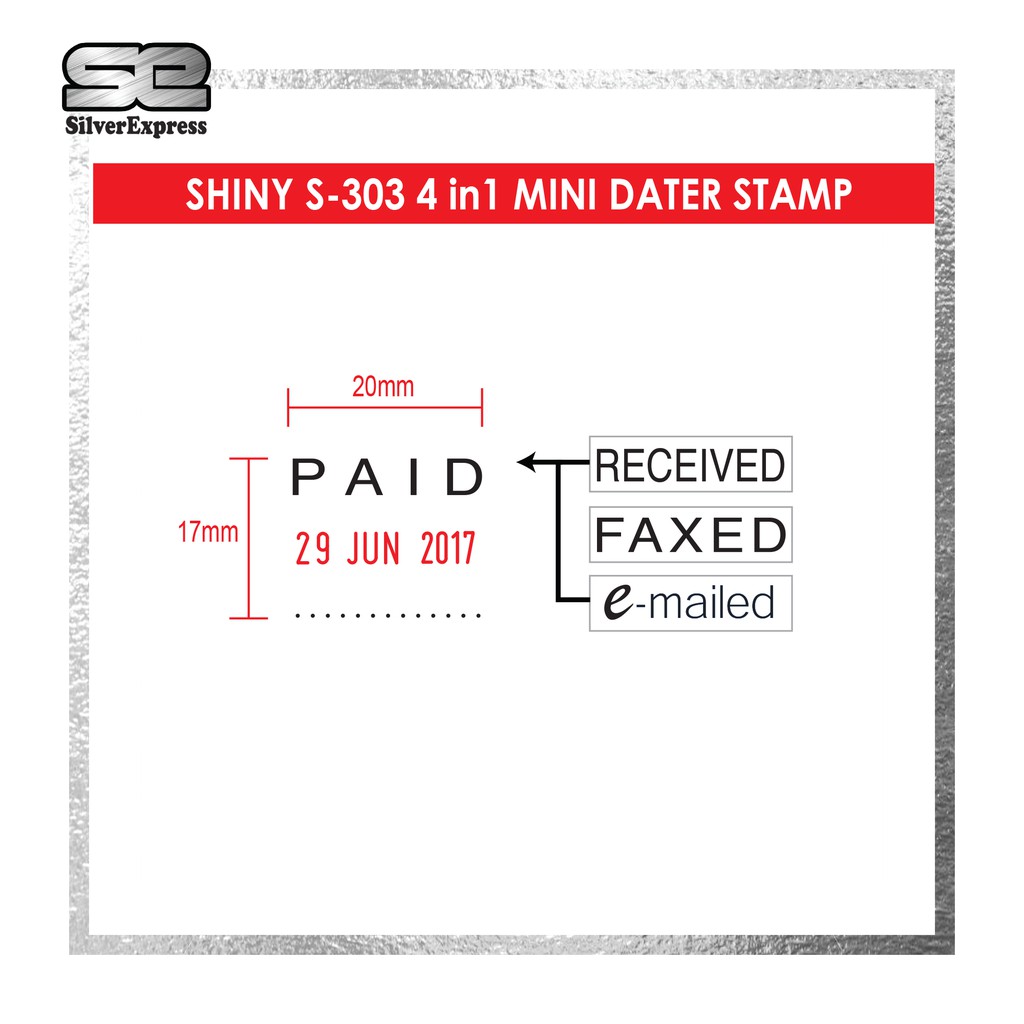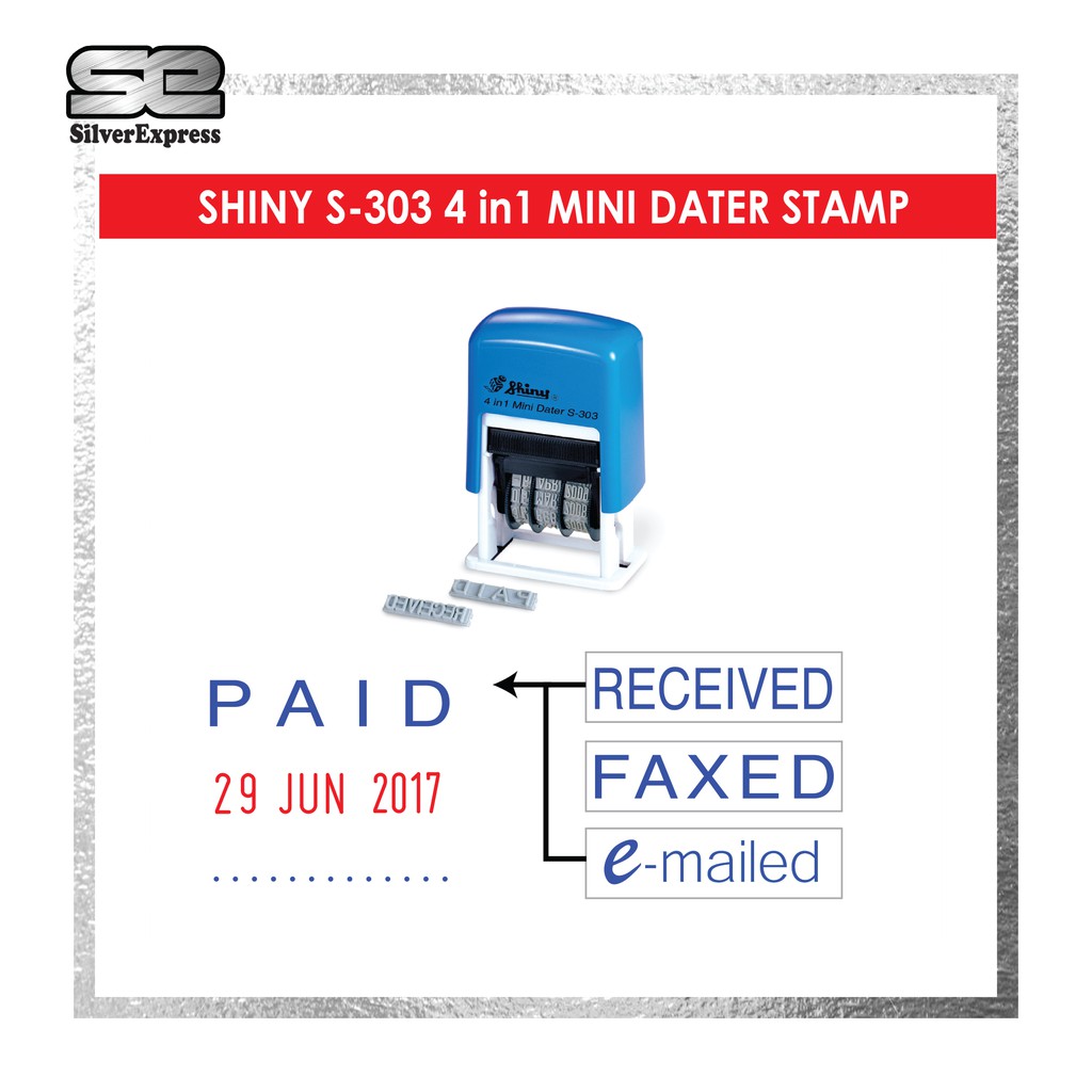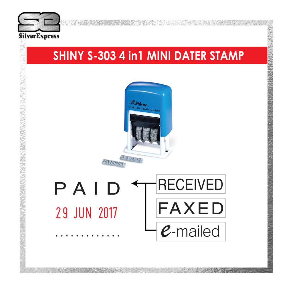SHINY 4 in 1 Mini Dater S-303, Date Stamp, RUBBER STAMP, SELF INKING STAMP / S303 / SILVEREXPRESS