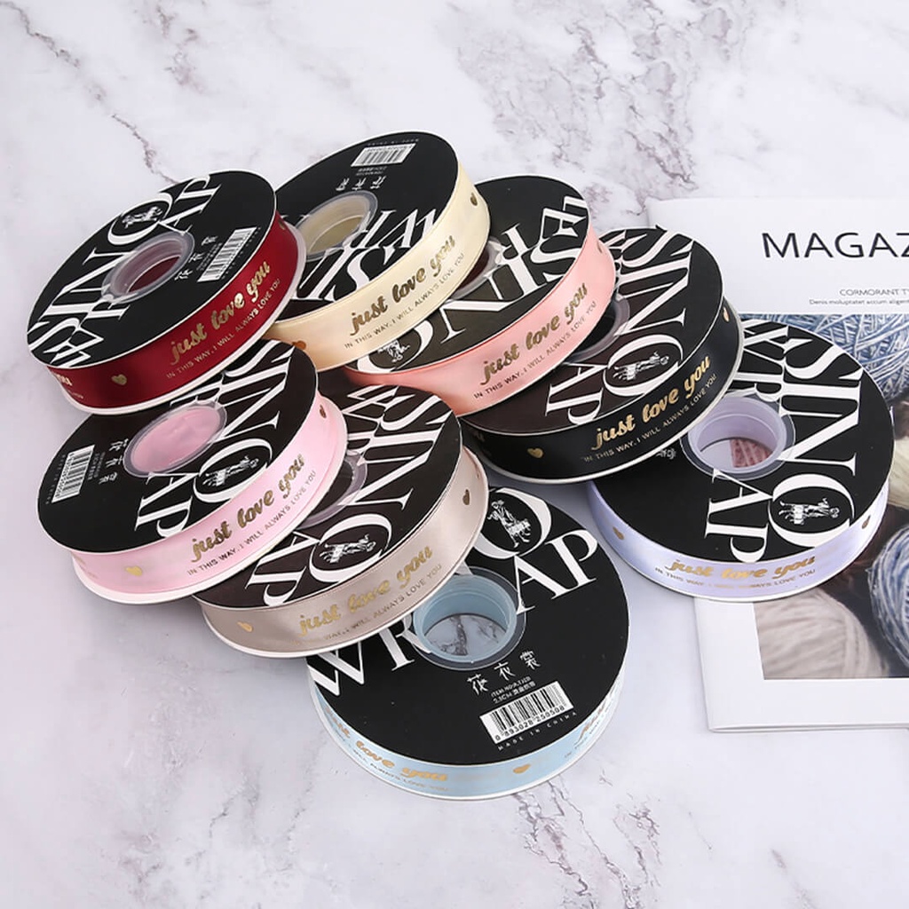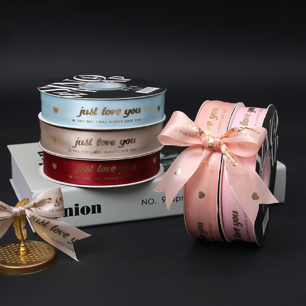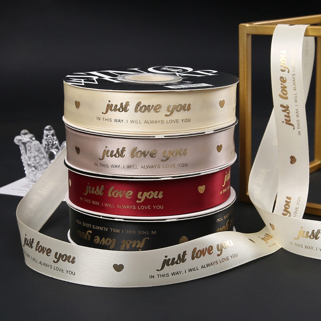 SHIOK 2.5CM x 45Y Satin Fabric Ribbon 'JUST LOVE YOU' With Heart Shape | Reben ‘JUST LOVE YOU’ dengan Bentuk Hati RB0173