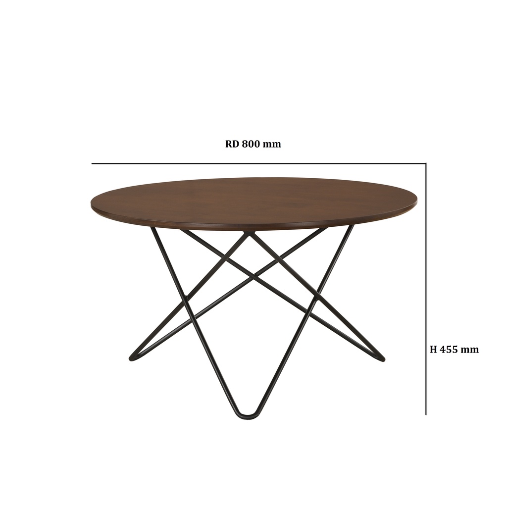 SHIRO Furniture Round Coffee Table 80cm Meja Kopi Solid Rubber Wood Center Table Metal Leg Walnut Oak Color Lounge Table