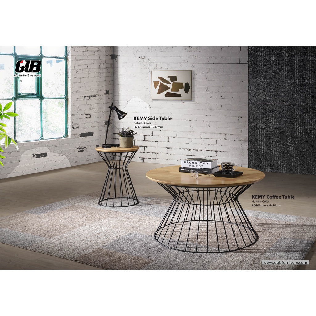 SHIRO Furniture Round Coffee Table Metal Leg Solid Wood Top Coffee Table Rubber Wood 80cm Meja Kopi Oak Walnut Color