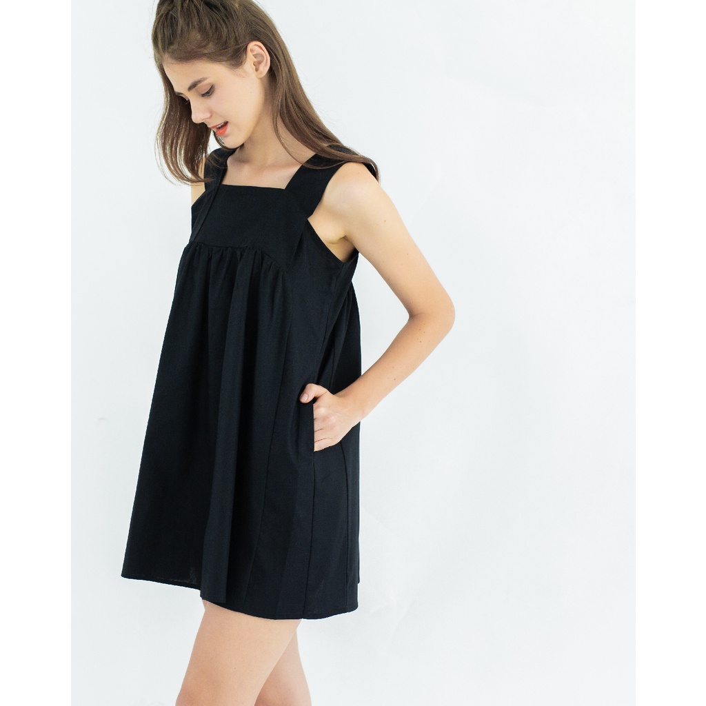 SHOPLOOOH Sleeveless Linen Mini Dress (Black)