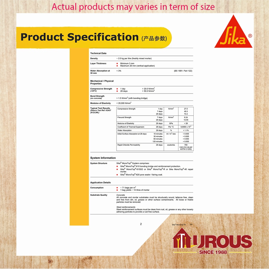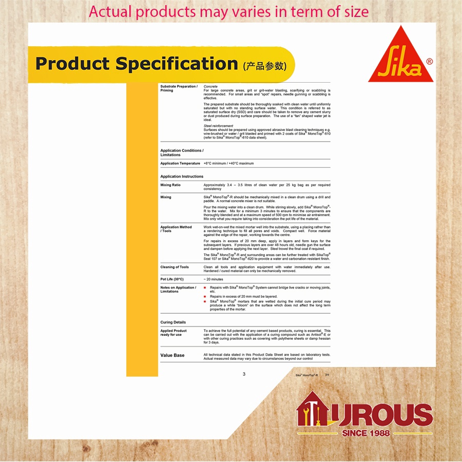 SIKA MONOTOP R (25KG) POLYMER MODIFIED CEMENTITIOUS HAND PLACED / WET SPRAY REPAIR MORTAR