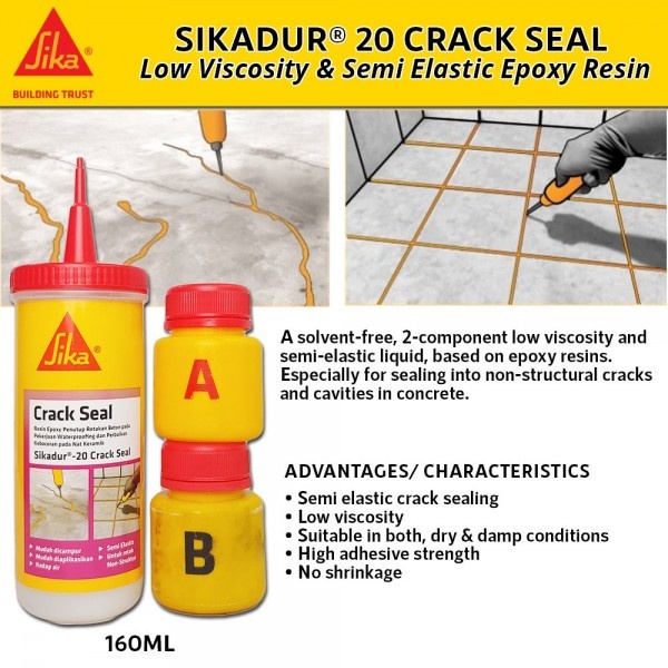 SIKA Sikadur 20 Crack Seal 160ml (A+B) Epoxy Resin l Repair & Seal Cement Floor Crack | Penutup Retakan Low Viscosity